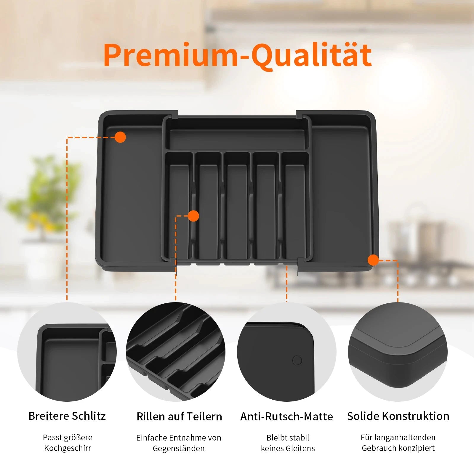 Verbessertes erweiterbares Besteck-Schubladentablett | Küchenutensilien-Organizer mit 6–8 Fächern | Besteck-Aufbewahrungsbox für Messer, Gabel, Löffel