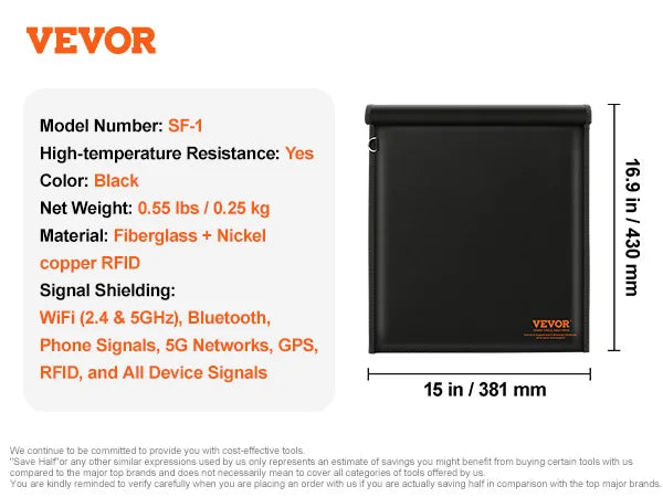 Das VEVOR Faraday Pouch Set vereint praxisorientierte Sicherheit mit robustem Schutzmaterial – entwickelt, um Ihre elektronischen Geräte zuverlässig vor unerwünschter Kommunikation, Auslese und äußeren Einflüssen zu schützen. Dank vielseitiger Größen, feuerhemmender und wasserdichter Eigenschaften sowie einer hochwertigen Abschirmung ist dieses Set eine professionelle Lösung sowohl für den privaten Gebrauch als auch für sensible berufliche Anwendungen. Schützen Sie Ihre Daten, reduzieren Sie die Angriffsfläche für Diebstahl und unerwünschte Ortung und profitieren Sie von einem durchdachten Zubehörpaket, das sich nahtlos in den Alltag einfügt.