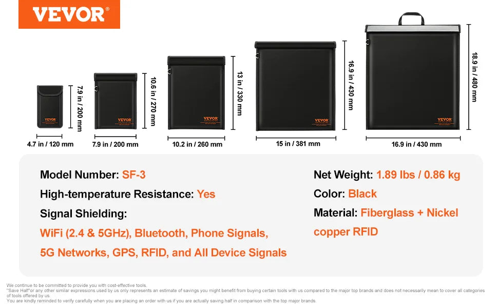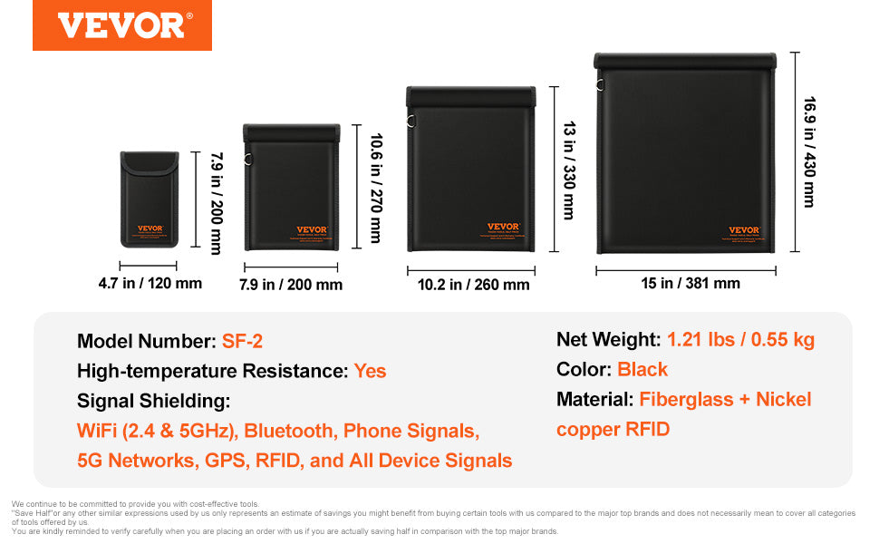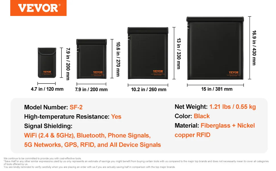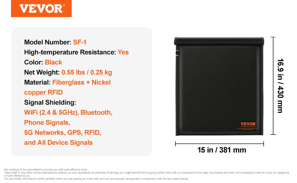 VEVOR Faraday Pouch Set für Laptop, feuersicher und wasserdicht, für Auto-Schlüssel, Phones, Tablets, Anti-Diebstahl-Pouch, Anti-Hacking-Fall