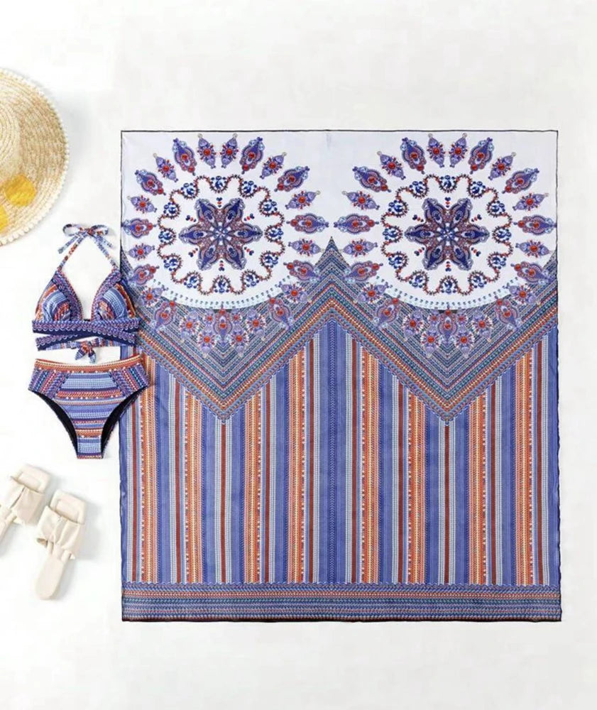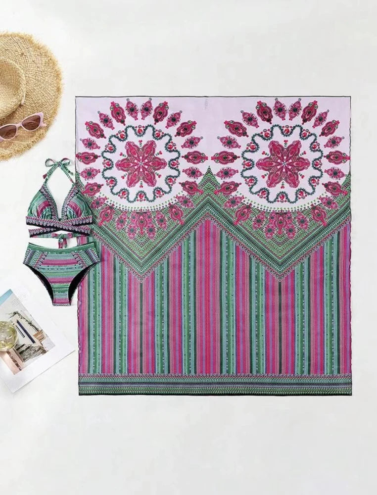 - Produkt: 3-teiliges Bademode-Set (Top, High-Waist-Hose, Mesh-Cover-Up)