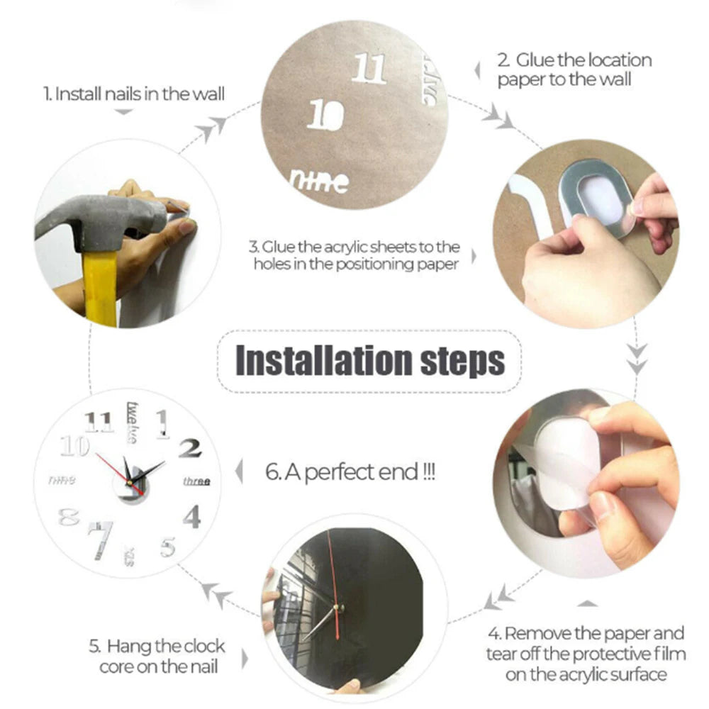 Wall Clock Watch Clocks 3D DIY Mirror Stickers – Stilvolle Wanddekoration mit einfachem Selbermachen