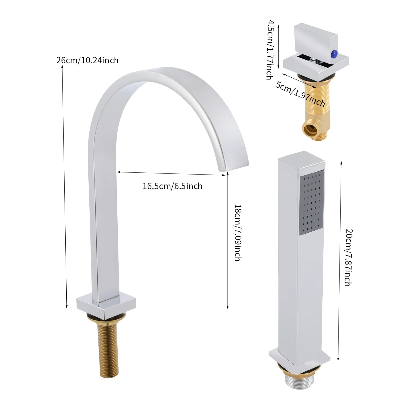 - Zwei Auslässe: Wannenauslauf und Handbrause bieten Flexibilität beim Waschen, Abspülen und Befüllen.