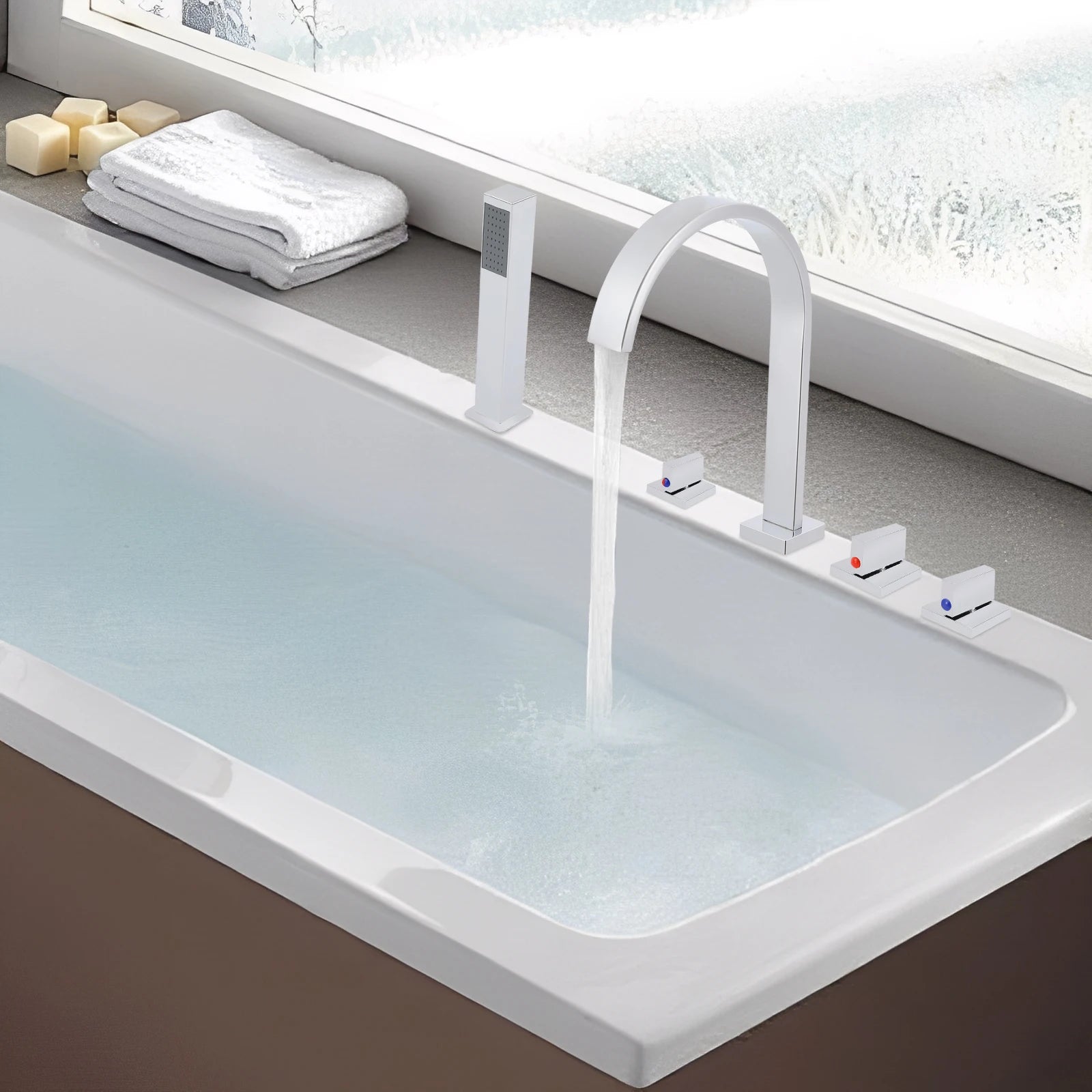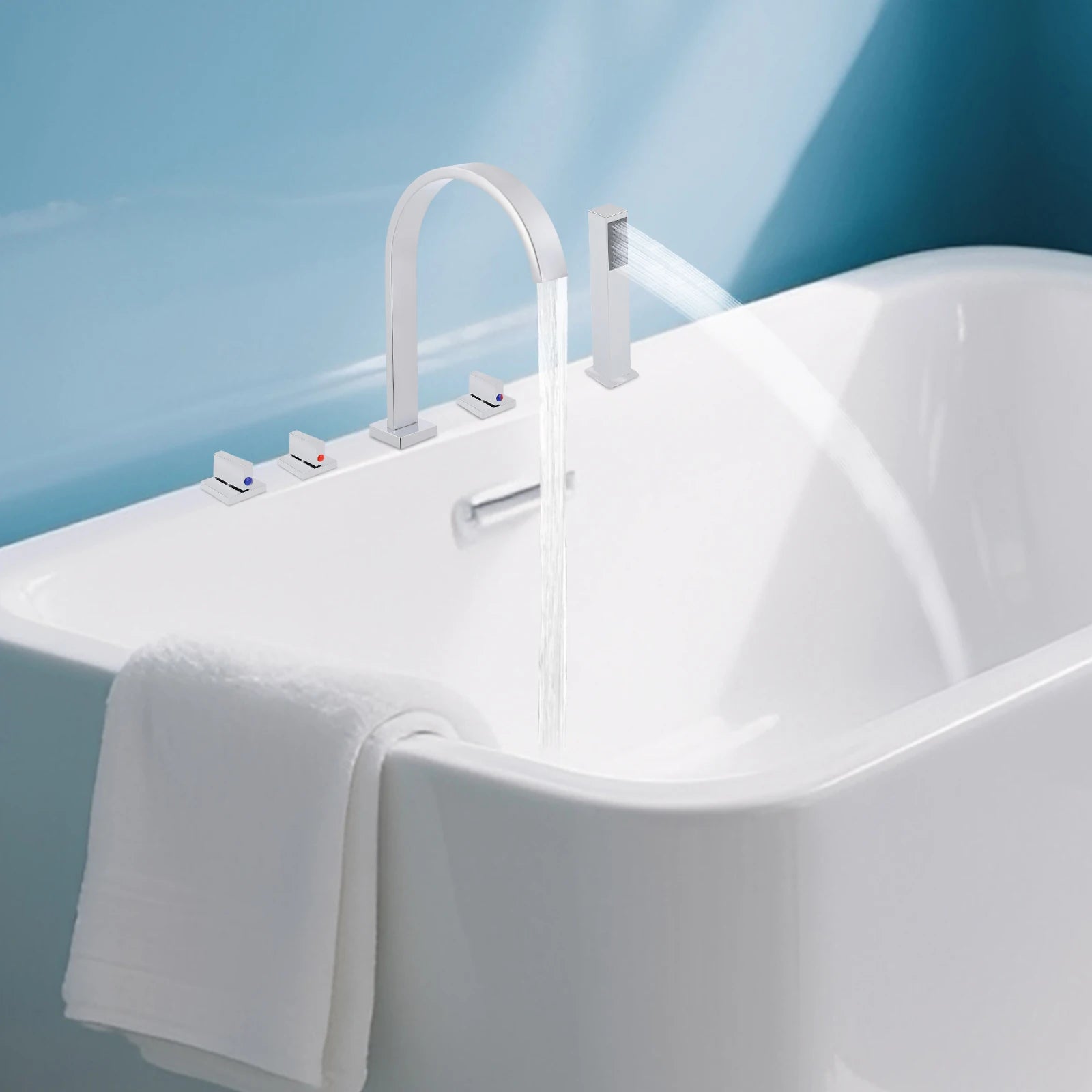 - Flexibilität durch 5-Loch-Installation und 3-Griff-System passt zu unterschiedlichen Badkonzepten.