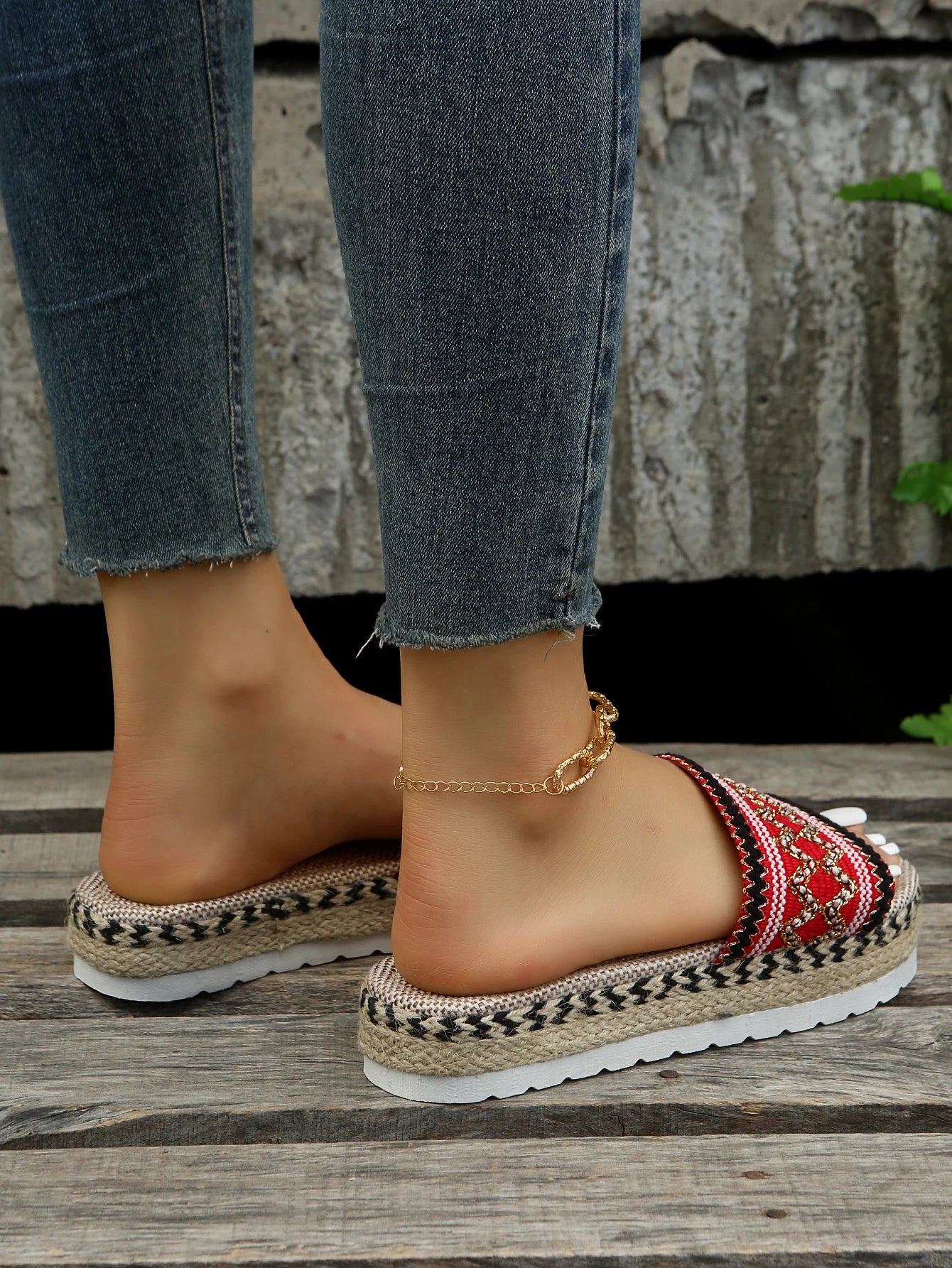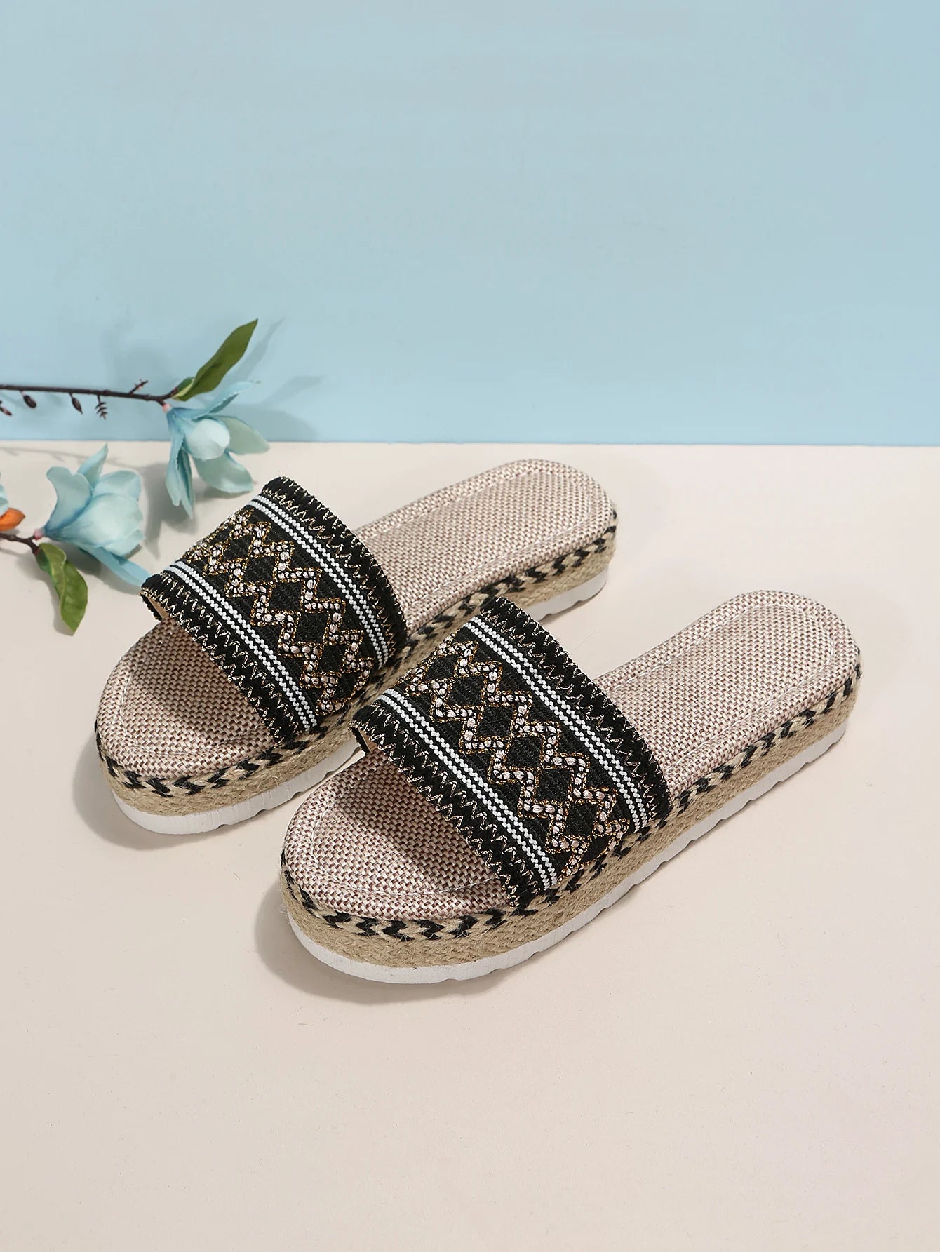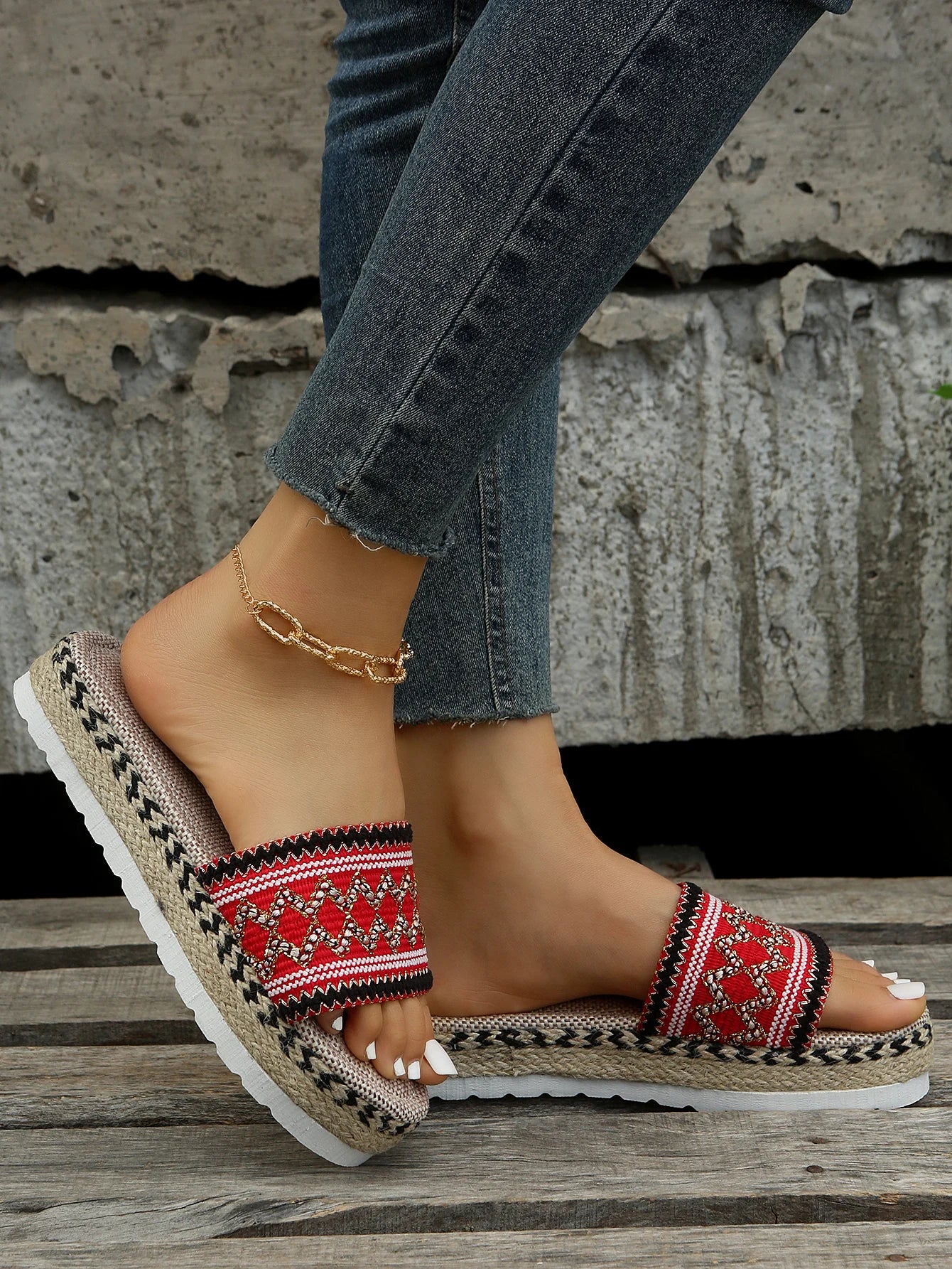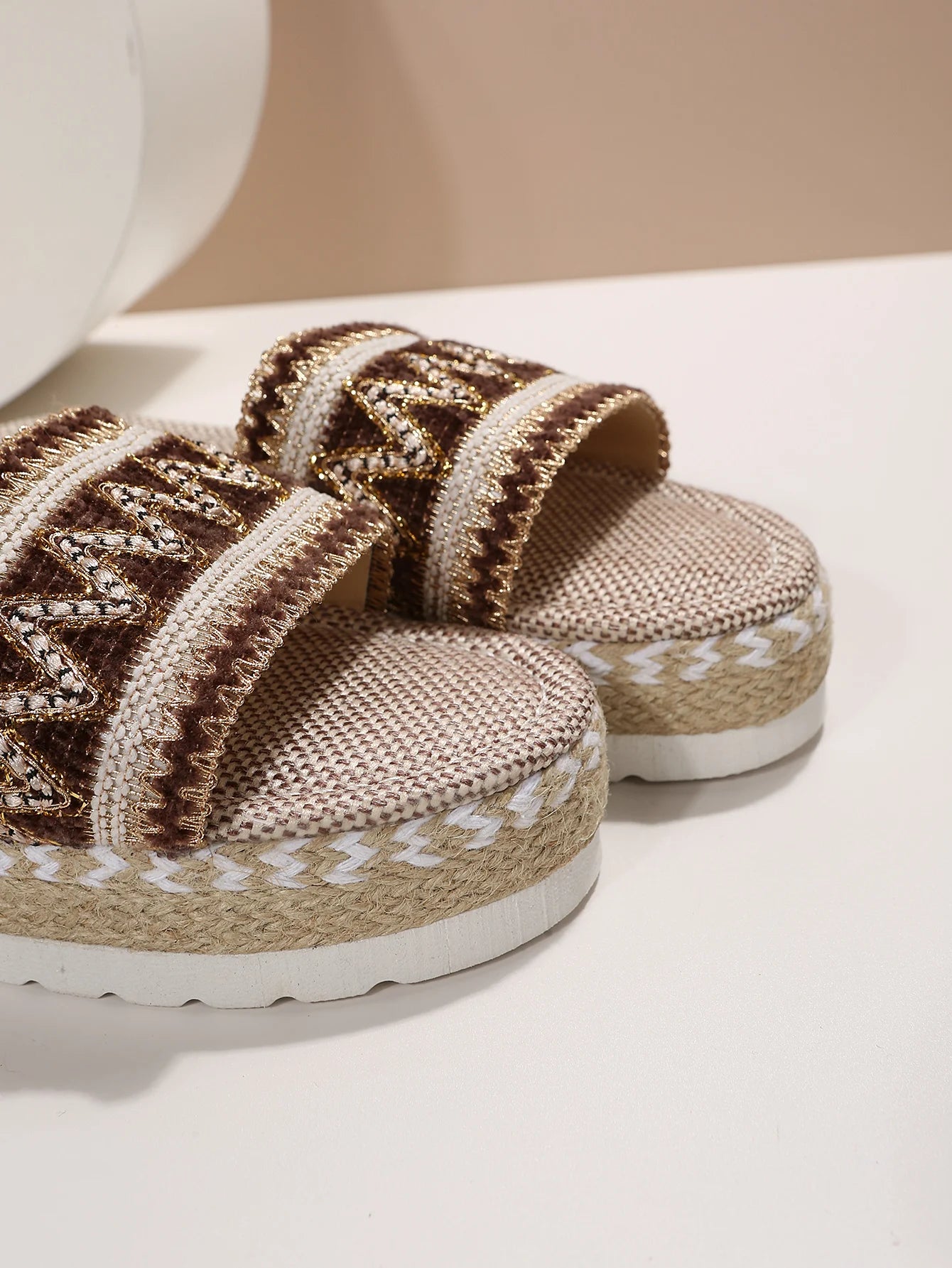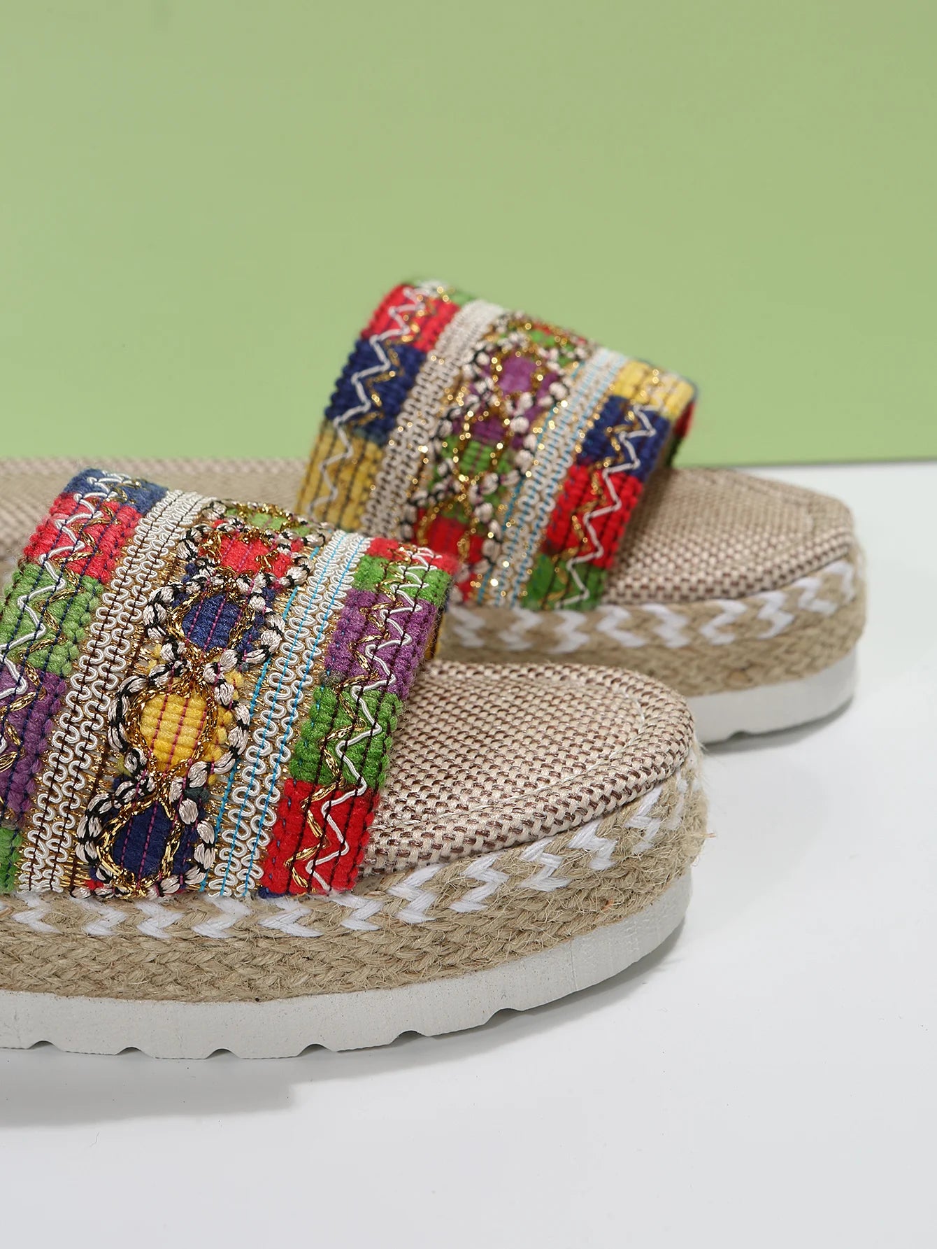 Gewebte Damen Pantoletten Platform – Komfortable Sommer-Schuhe mit handgefertigtem Boho-Charme