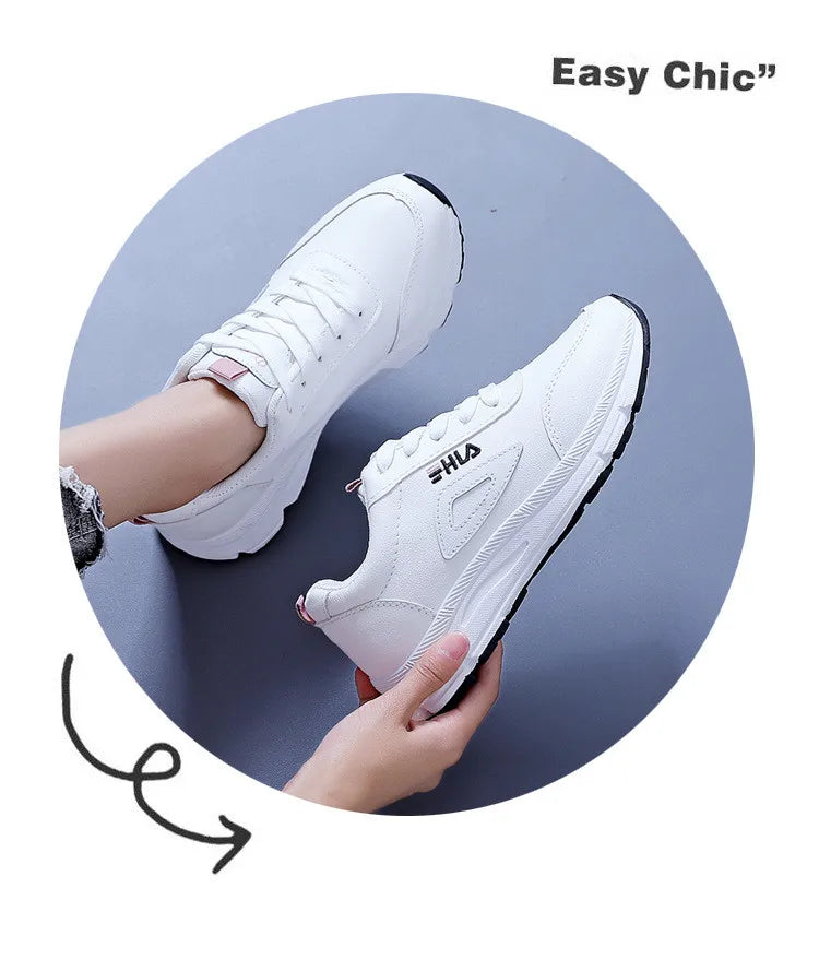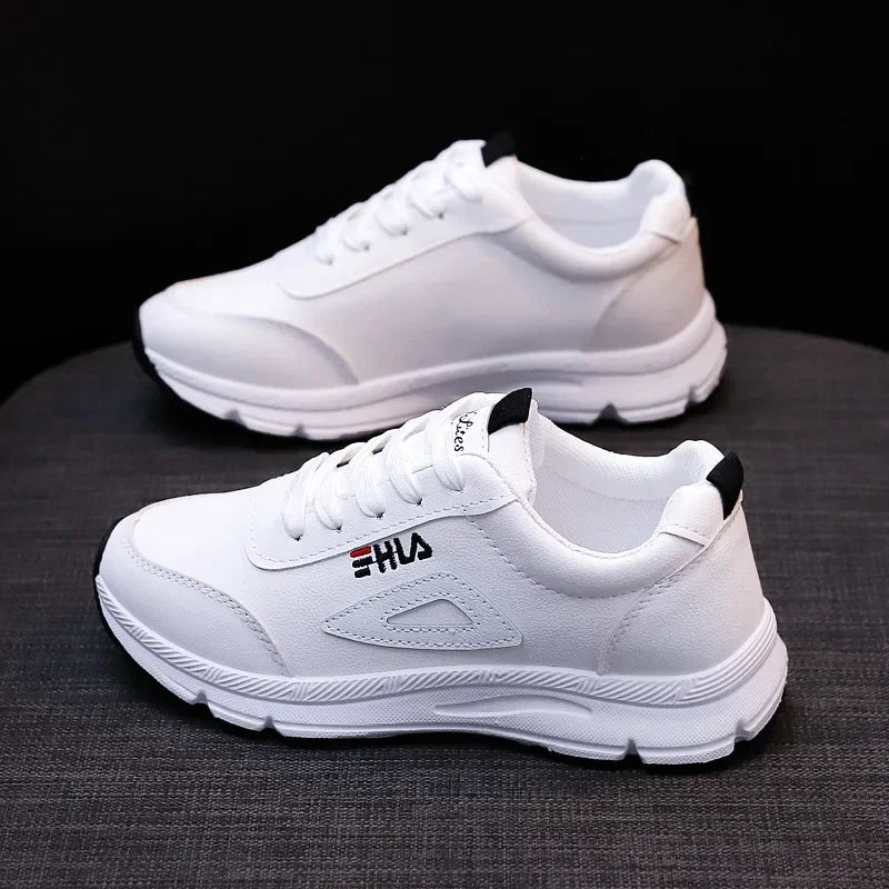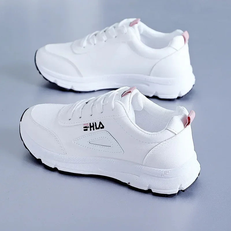 Diese weißen Damensneaker verbinden atmungsaktives Material mit einer leichten, flexiblen Sohle und bieten so den ganzen Tag Komfort bei Spaziergängen, Trainingseinheiten und urbanen Aktivitäten.
