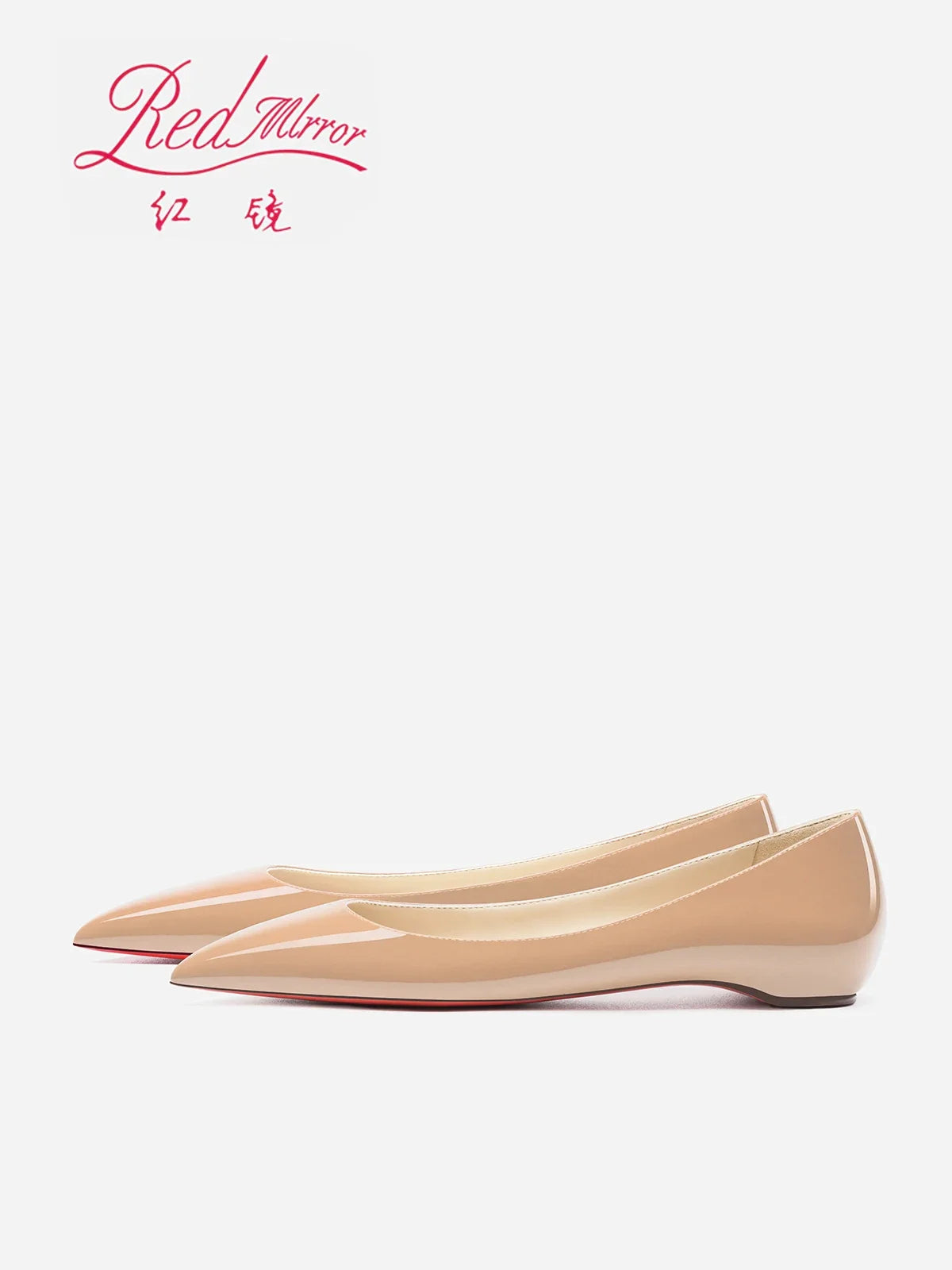 woman 2024 trend luxury women's Leather Shoes for Women Flat Shoes Red Shiny Bottom Elegant Pointed Toe Boat Shoes