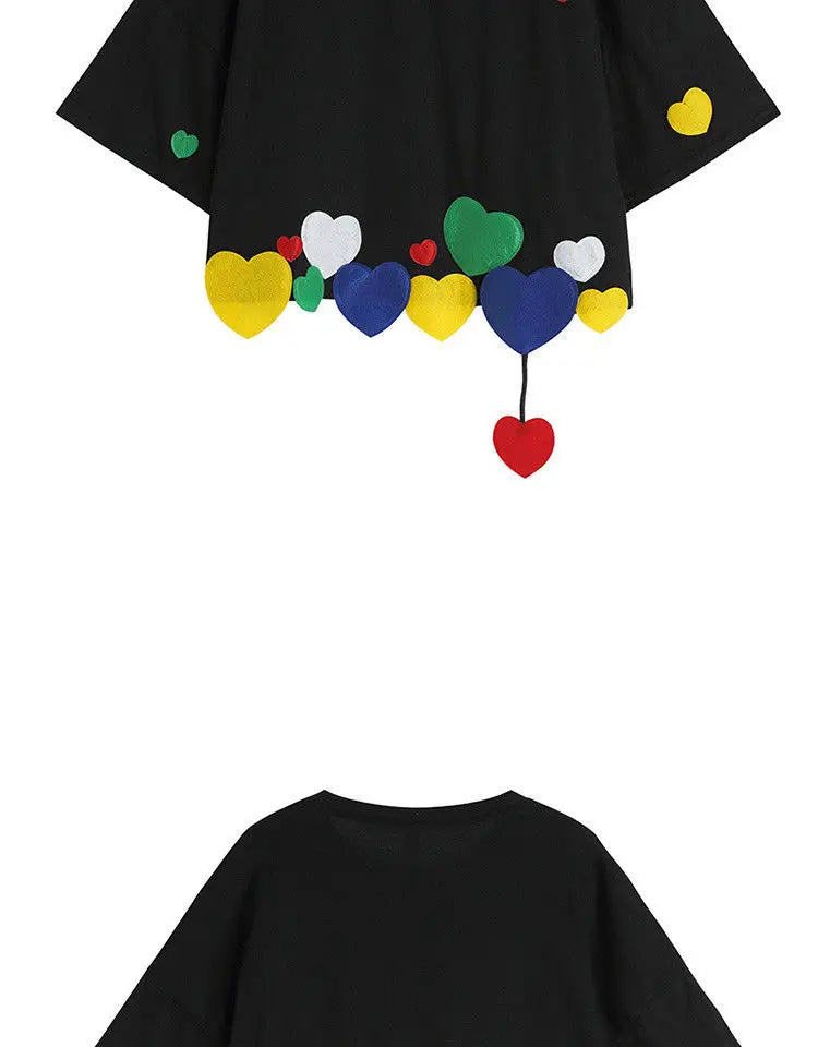 Woman T-shirts 2022 New Summer Cotton Chiffon Tops Casual Short Solid O-Neck Heart Girls T-shirt Y2k Top