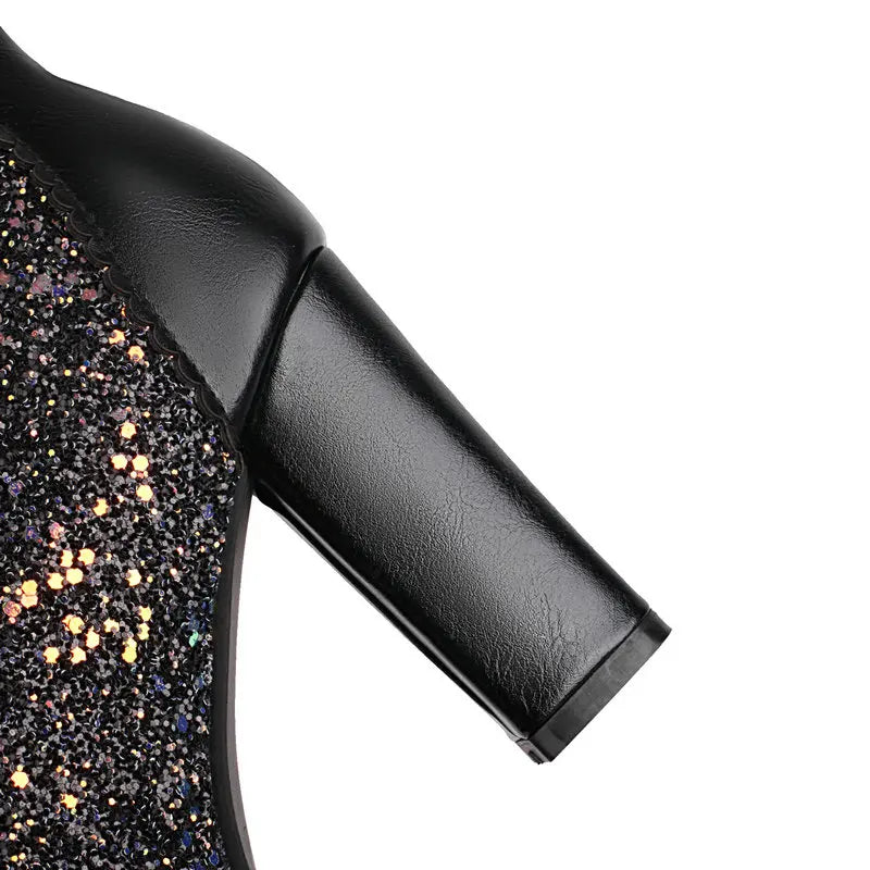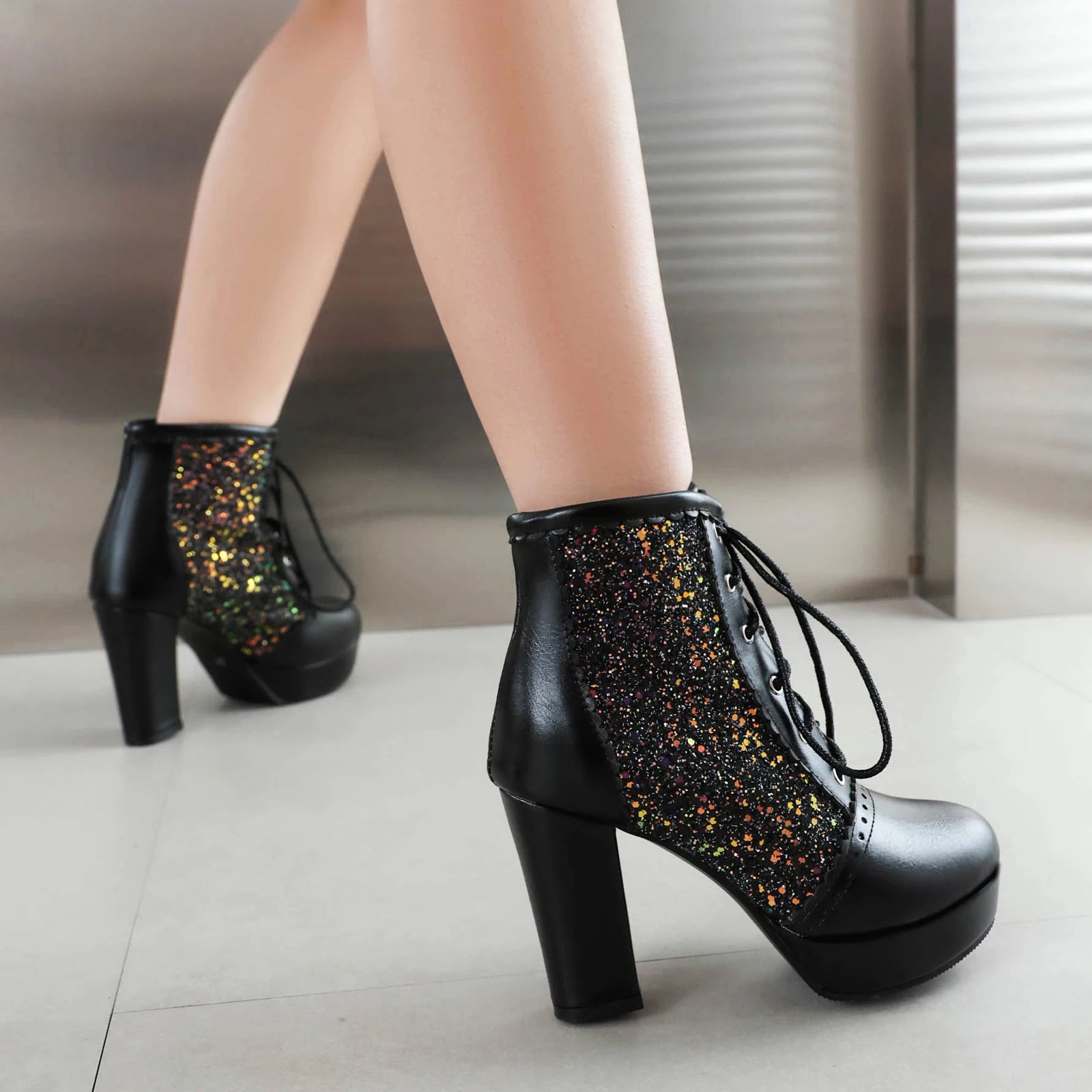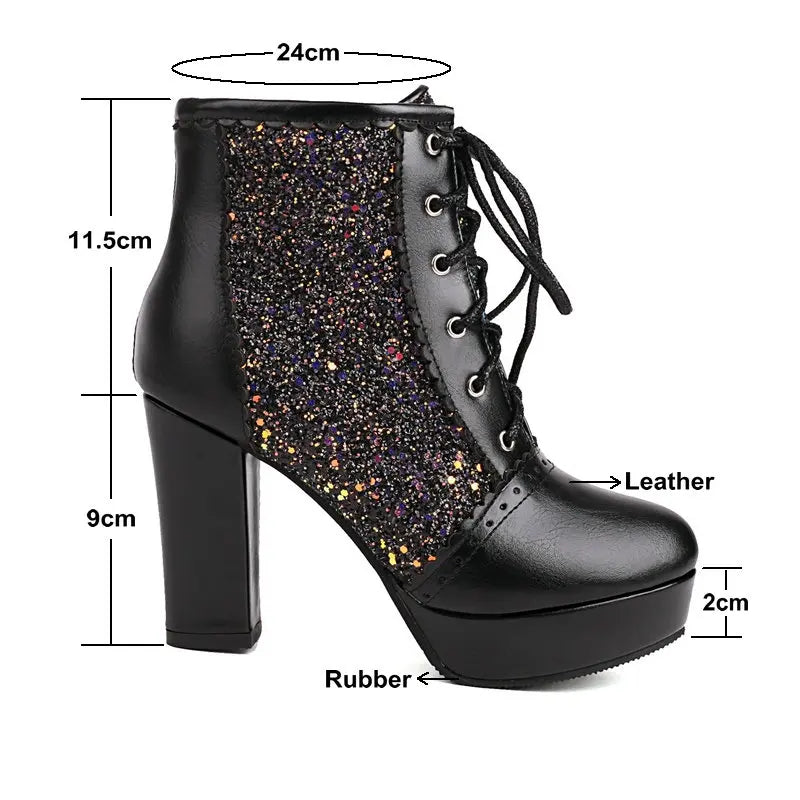 Women Ankle Boots Gold Silver Red Platform Shoes Elegant Studded Sequin Lace Up Autumn Winter Comfy Stable Chunky High Heels