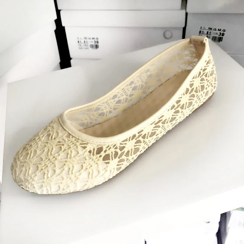 Damen Ballerinas mit Schleife - Flache Slip-On Schuhe - Cut-Out Design Atmungsaktive Casual Flats