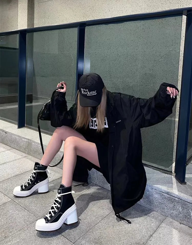 Diese modischen Plateau-Sneaker kombinieren lässiges Design mit extra Komfort und geben Ihrem Outfit sofort einen modernen, selbstbewussten Look. Die Women Platform Sneakers Canvas sind ideal für Frauen, die Wert auf Stil, Stabilität und Alltagstauglichkeit legen. Durch die erhöhte Sohle und die robuste Verarbeitung entsteht ein souveräner Auftritt bei Freizeit, Sport oder Shoppingtouren.