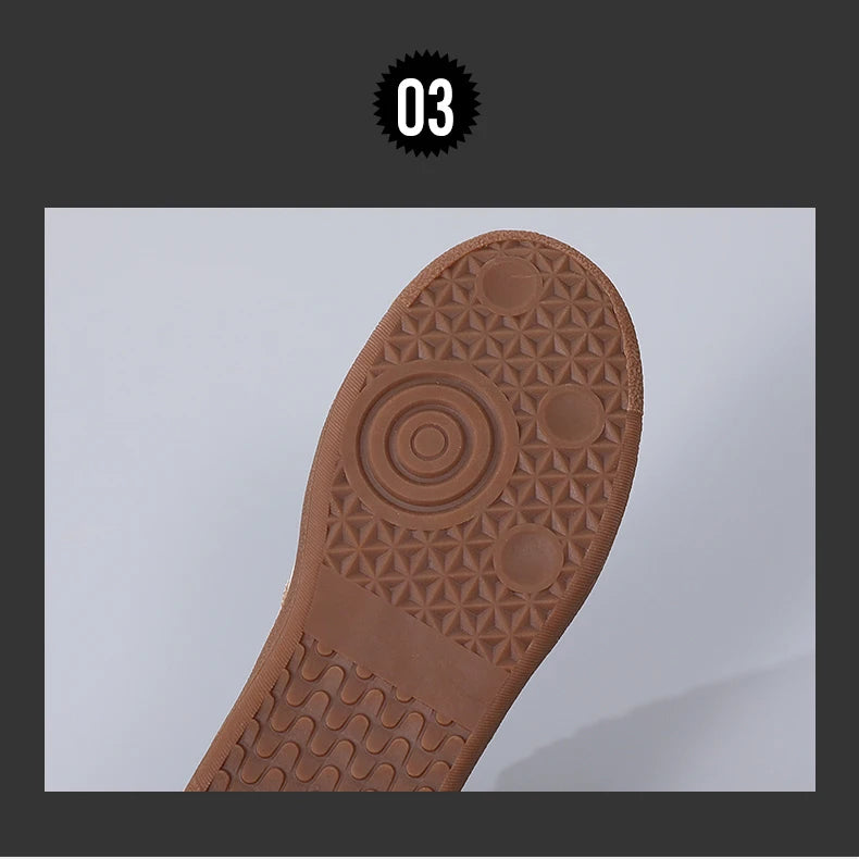 - Die flache, vulkanisierte Plateausohle bietet zusätzliche Dämpfung und Stabilität, ohne das Gehgefühl zu beeinträchtigen.