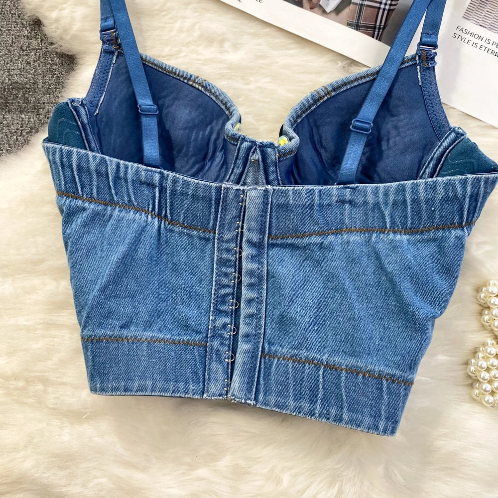 Women Summer Denim Camisole Corset Top – Eleganter Look mit funkelnden Details für Club und Alltag
