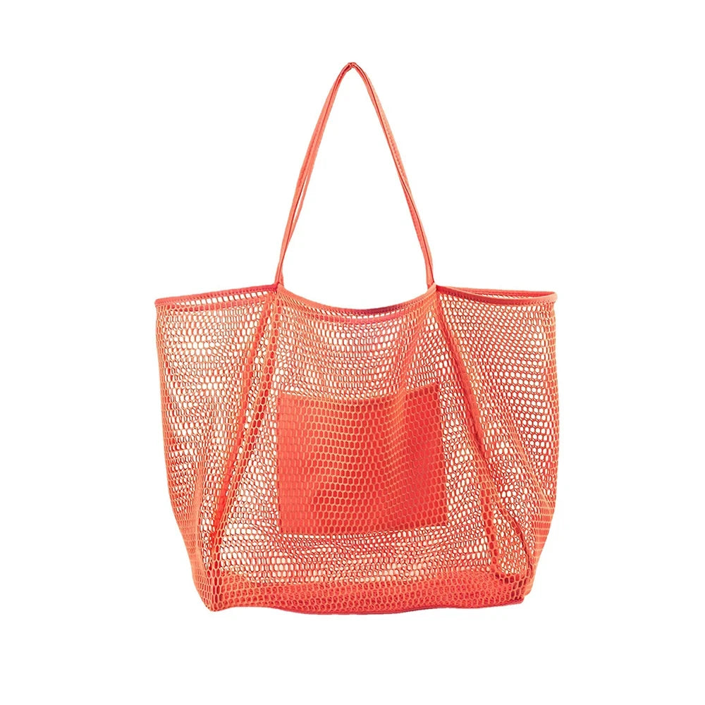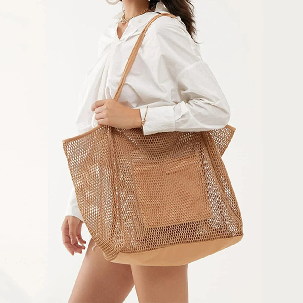 Women Swimming Beach Mesh Bag Ladies Shoulder Bag Large-capacity Travel Portable Storage Bag Multifunction Handbag