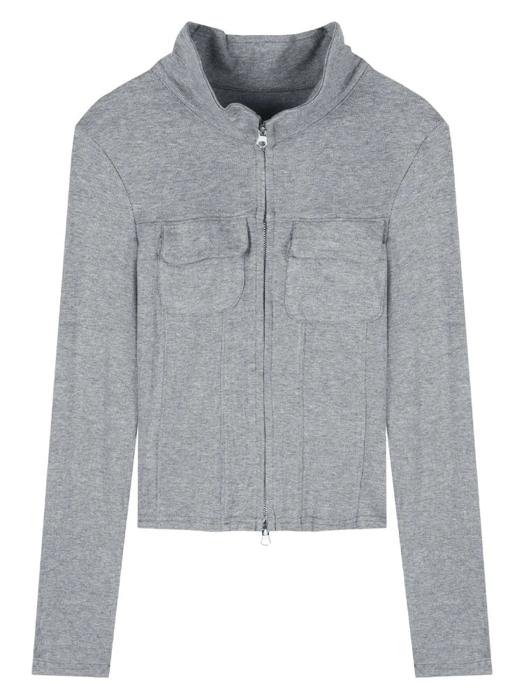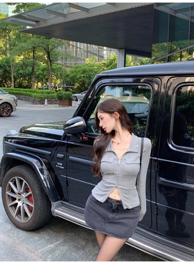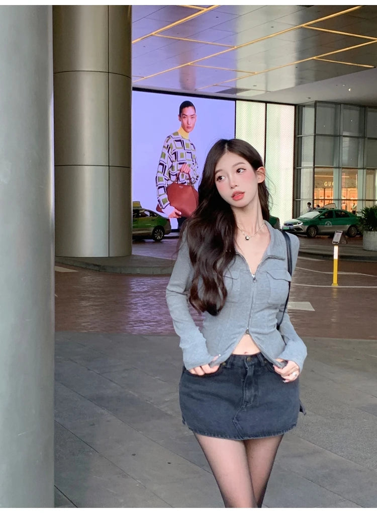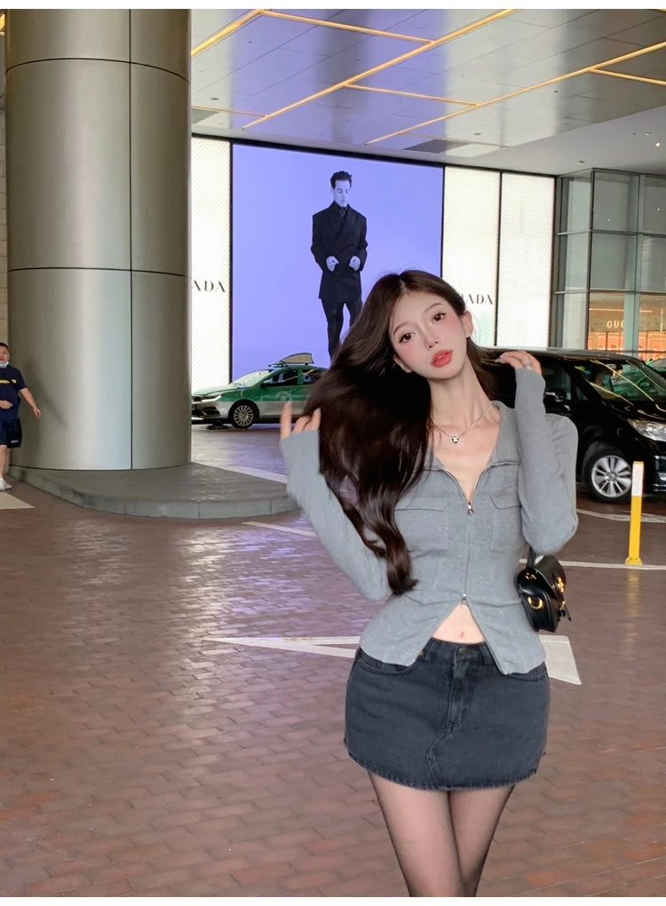 - Produktname: Women T-shirt Spring Autumn Clothes Ribbed Knitted Long Sleeve Short Tops Zipper Design Tee