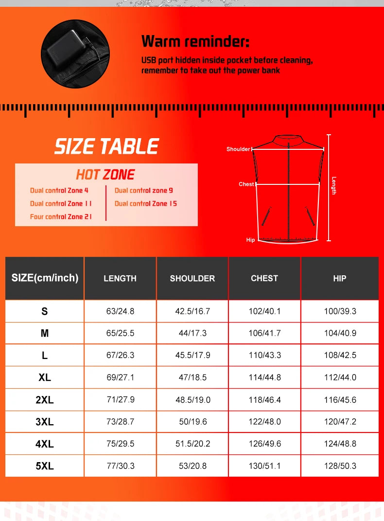 NUOYING Beheizte Weste USB Warmhaltejacke - Kapazität 2600mAh, Leistung 5V 2,0 A, Größe M
