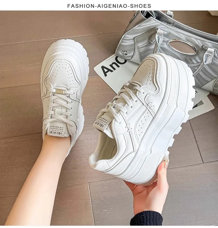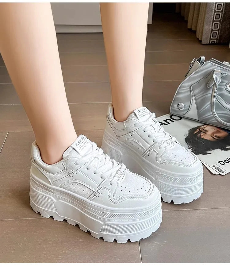 Women9 CM Platform Sneakers Casual Outdoor Simple Design Skateboard Comfortable Lace Up Sneakers Running Sports Shoes Female 40