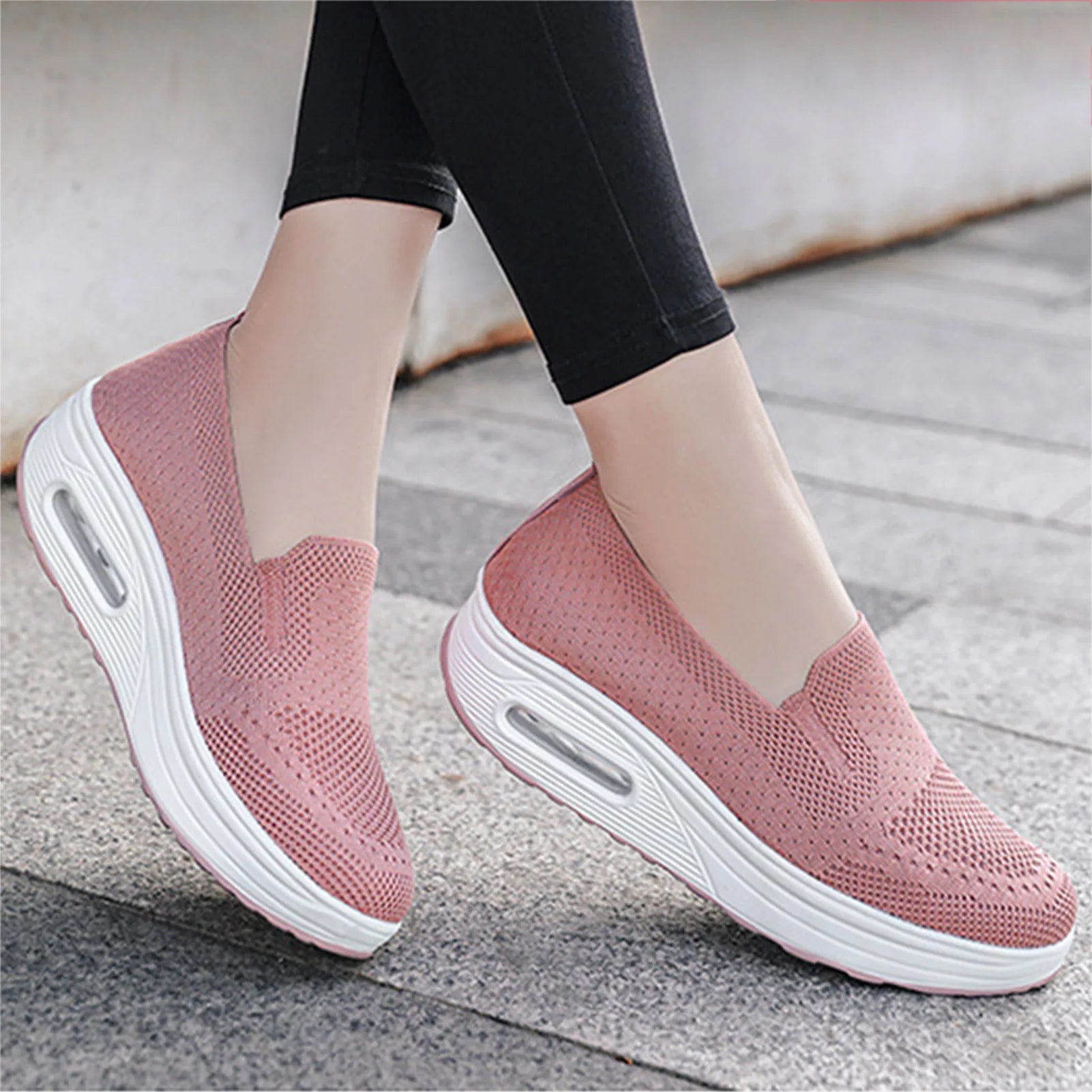 Women's Casual Slip on Sneakers Breathable Flying Woven Mesh Upper Jogging Shoes for Walking Biking Driving
