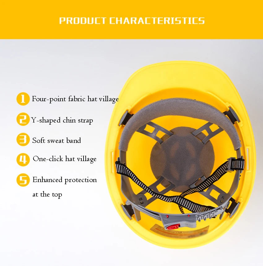 Worker Construction Site Protective Cap ABS Hard Hat V Shaped Adjustable Size Rotary Knob Safety Helmet