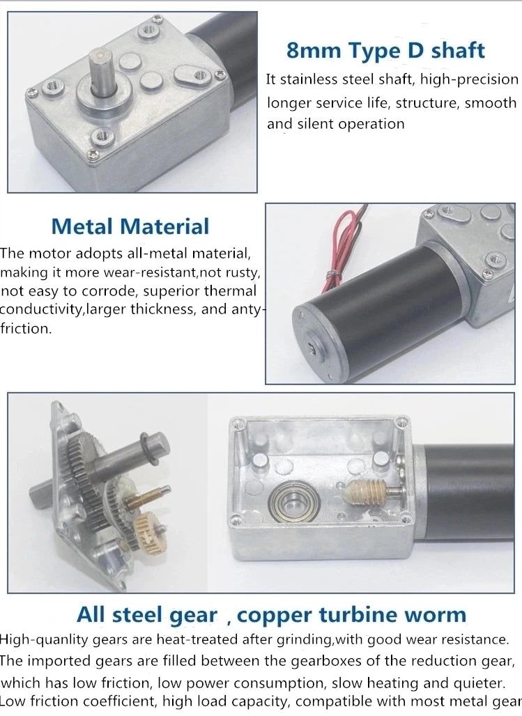 Worm Gear Motor 12V 24V Reversed 12-470rpm DC Motor High Torque 3.4-70kg Self-Lock For Curtain Machine Customized Home Equipment