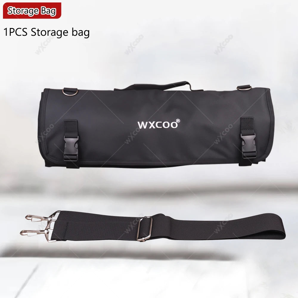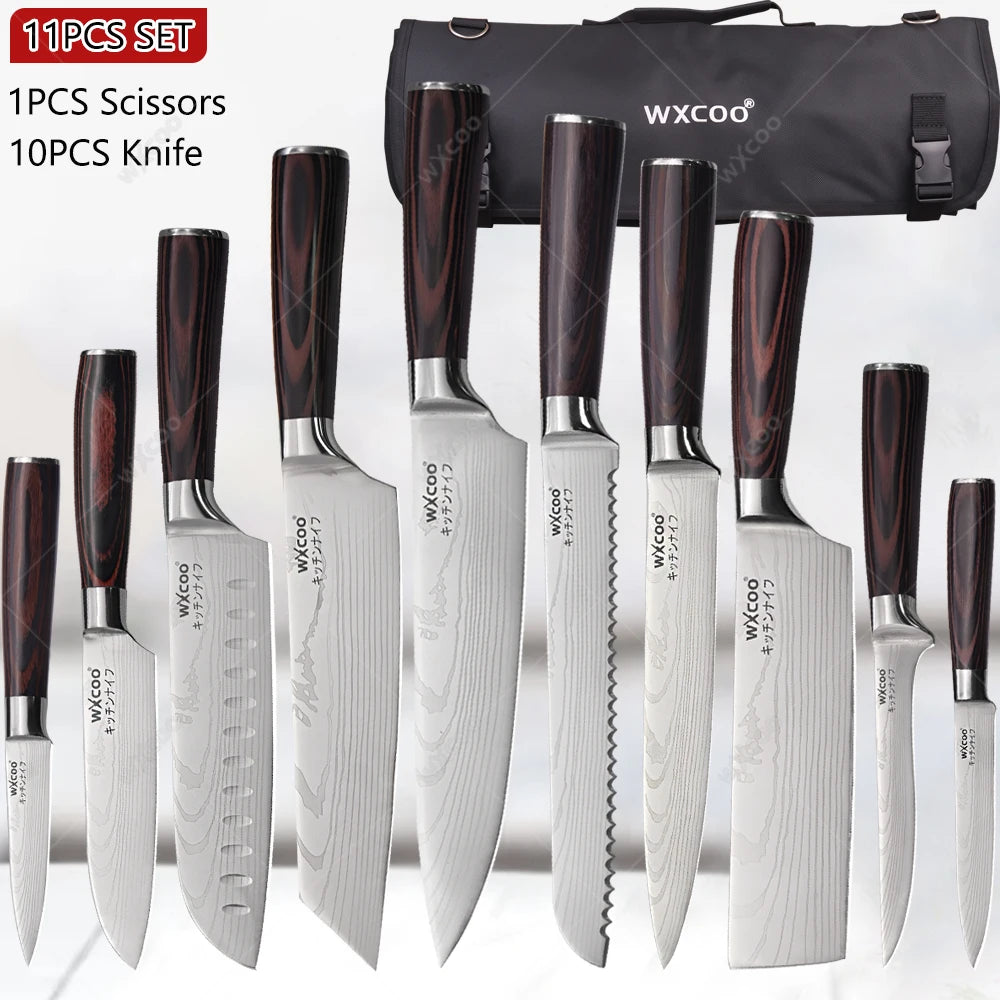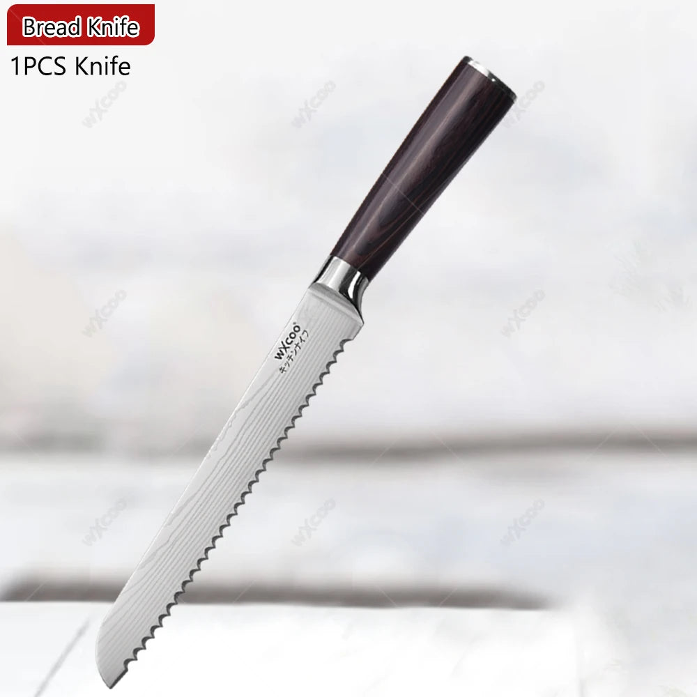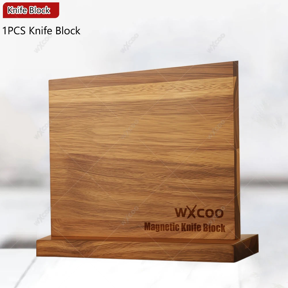 WXCOO Professional Kitchen Chef Knife Damascus Steel Laser Pattern Santoku Knife Double Side Magnetic Kitchen Knife Block