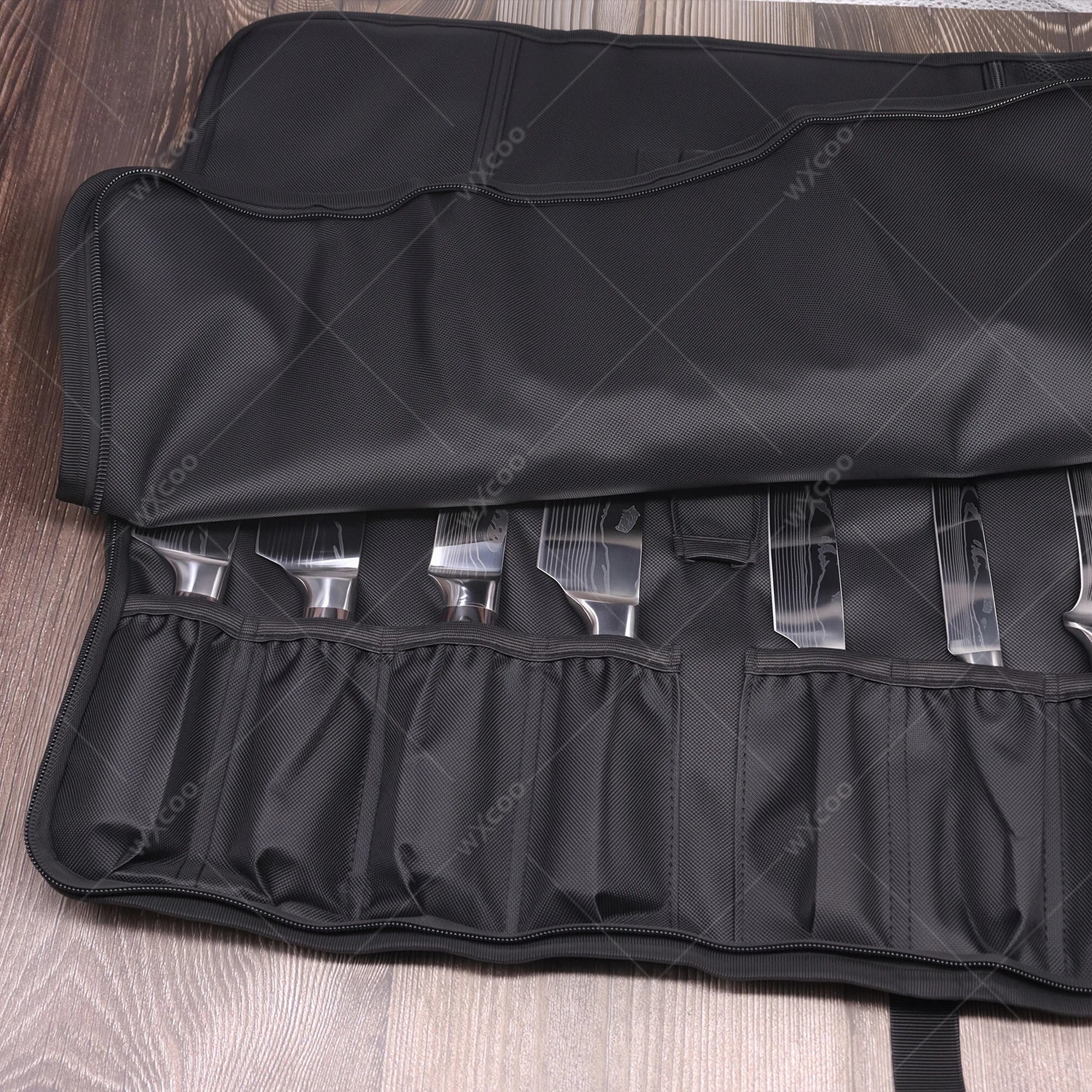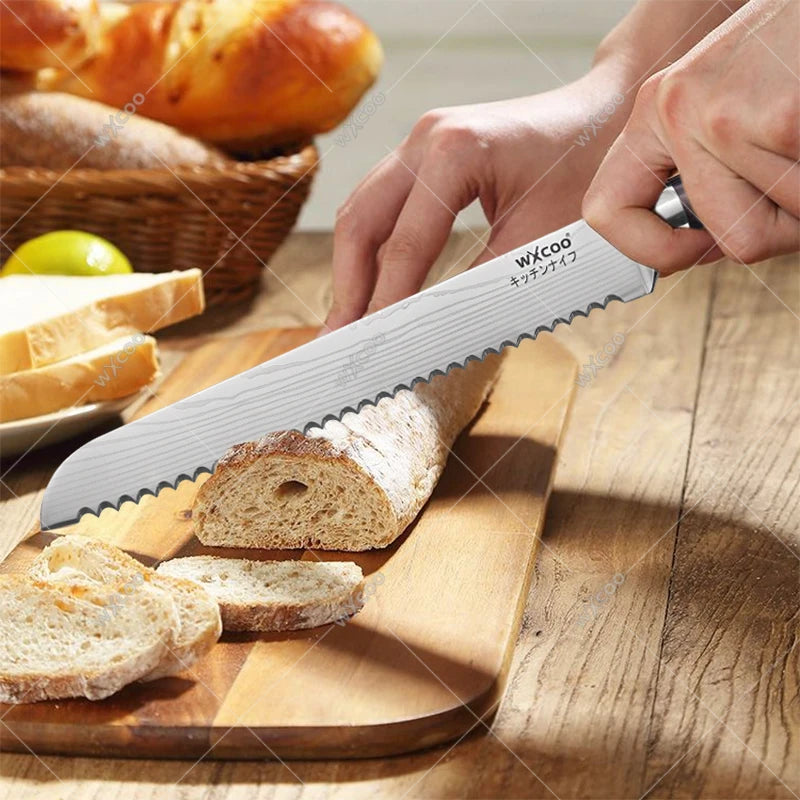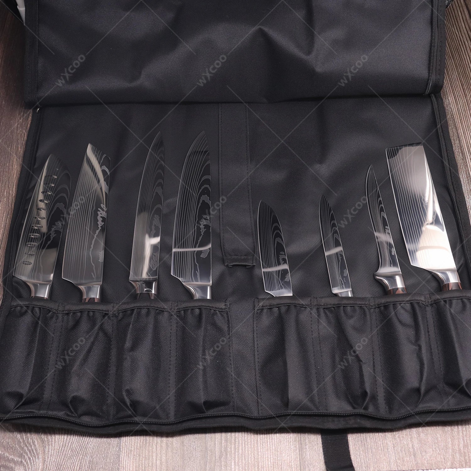 WXCOO Professional Kitchen Chef Knife Damascus Steel Laser Pattern Santoku Knife Double Side Magnetic Kitchen Knife Block