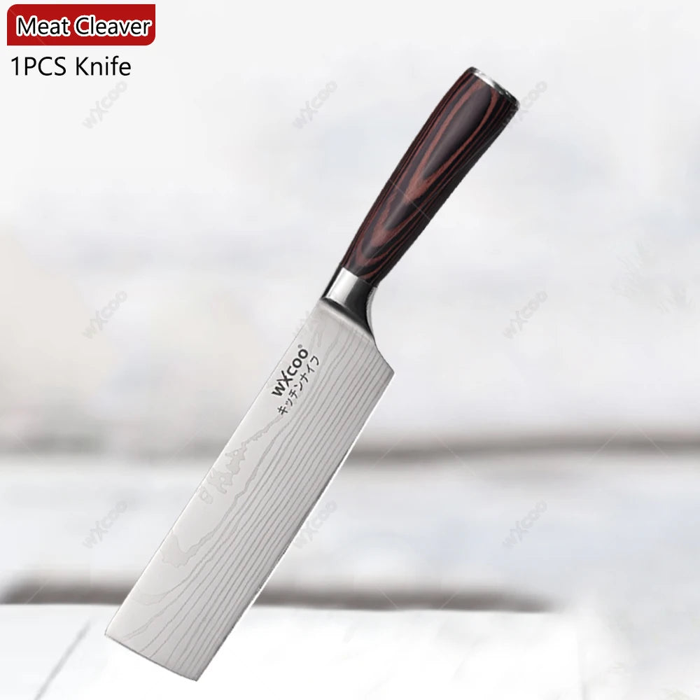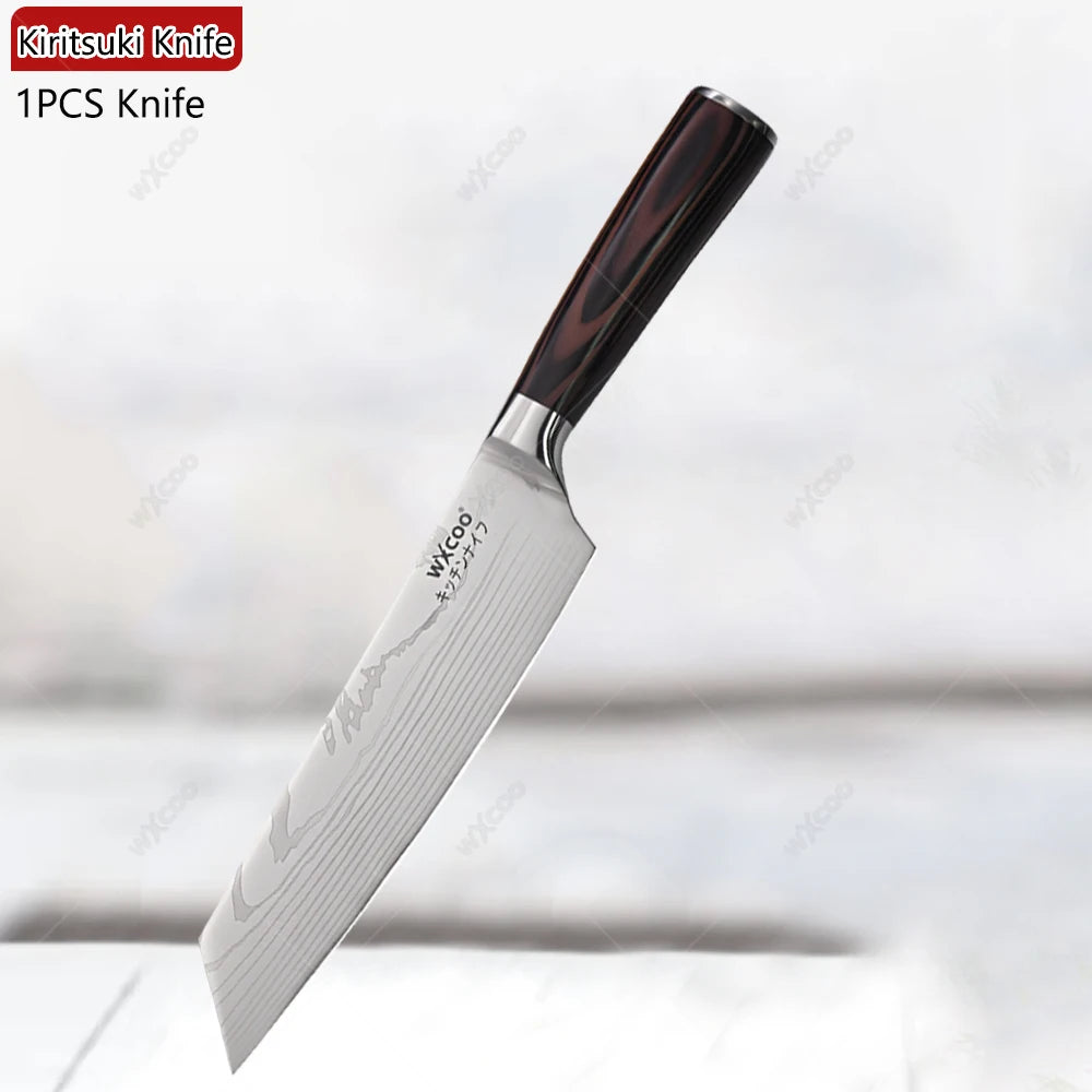 - 1 x WXCOO Santoku-Messer (Damast-Laser-Pattern, 12,5 cm Klinge)