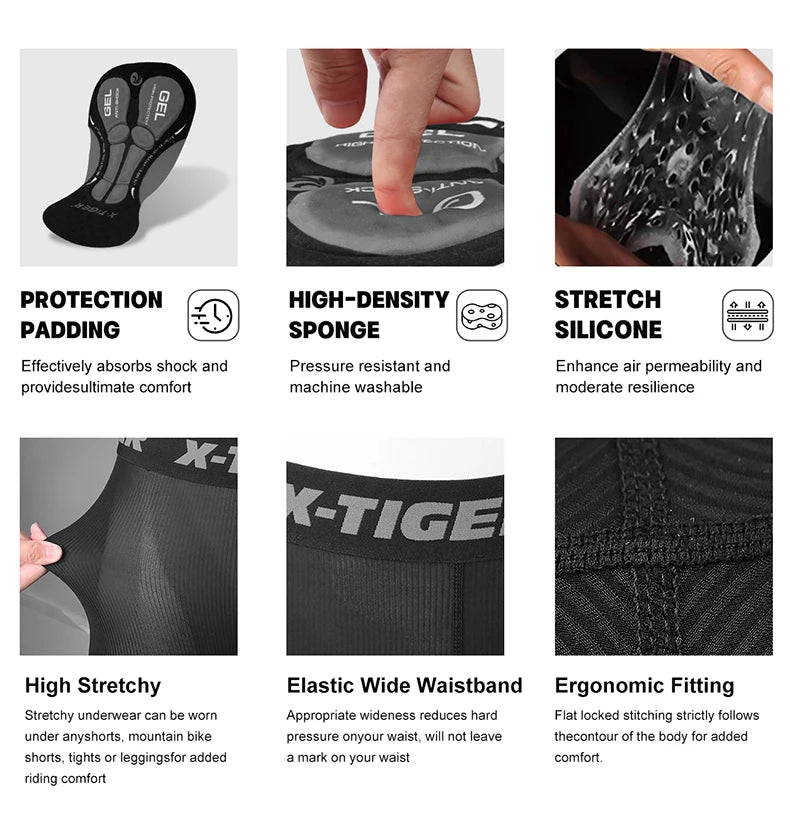 - 1 x X-TIGER XM-DNK-36001 Radsport-Shorts mit integriertem Gel-Pad