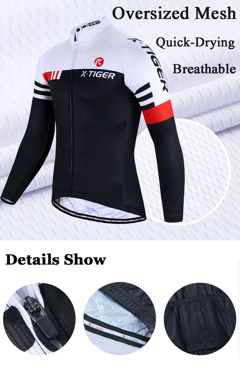 X-TIGER Top Qualität Radfahren Trikot 2025: Langarm MTB Fahrrad Polyester - Berg Fahrrad Sportbekleidung Atmungsaktiv Schnell Trocknend Schweißabweisend Taschen