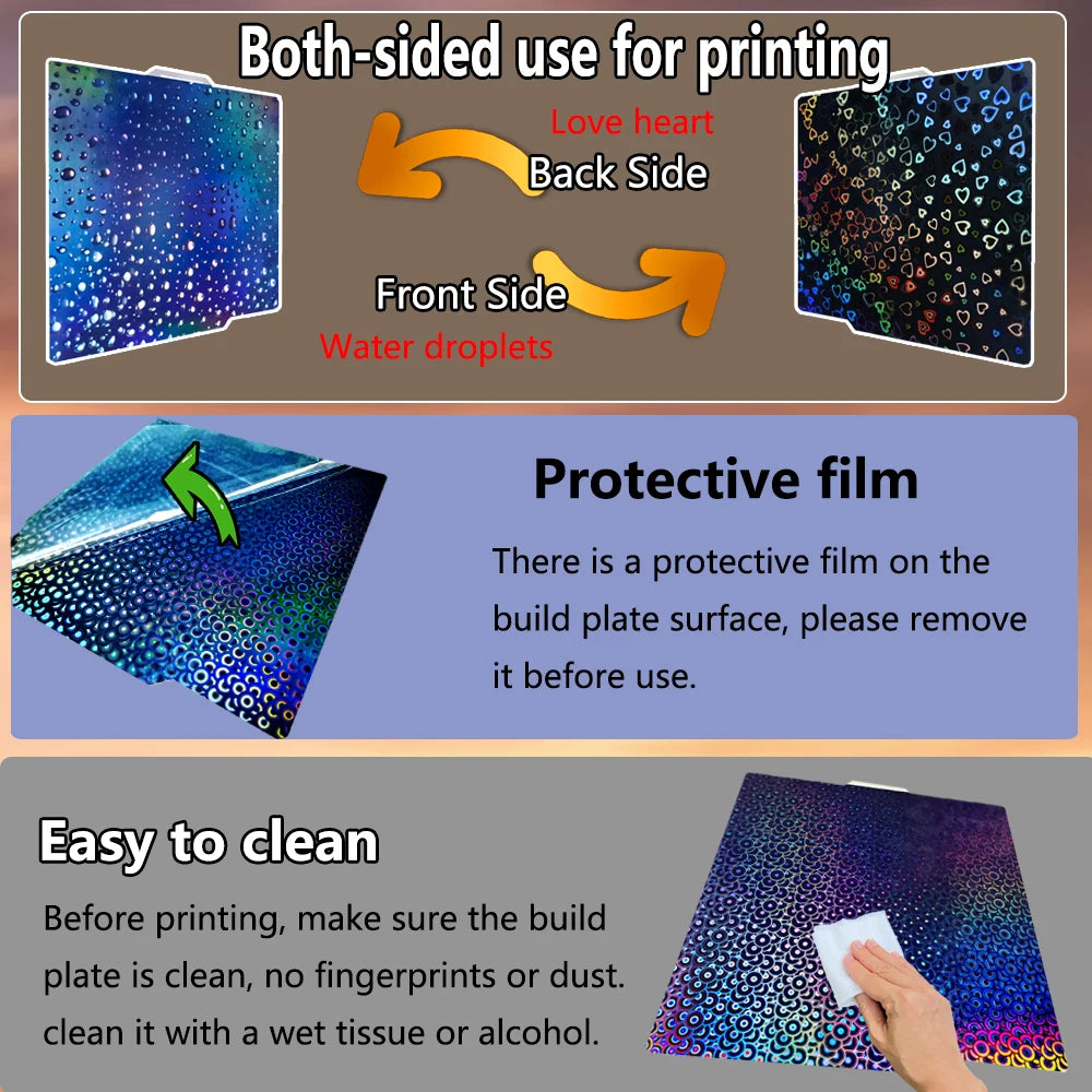 - Stabile Haftung während des Drucks: Die PEI-Oberfläche gewährleistet, dass Druckobjekte sicher auf der Platte verbleiben und sich Verzug oder Lösen minimiert.