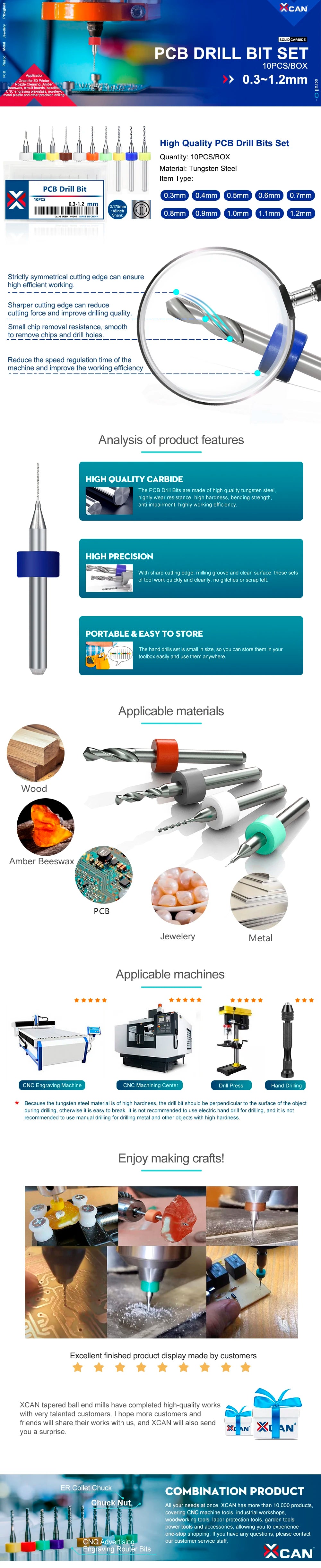 XCAN 10Stk/Set 0.3mm bis 1.2mm PCB Mini Bohrer Bit Wolfram Stahl Hartmetall für Print Schaltkreis Board CNC Bohrer Bits Maschine