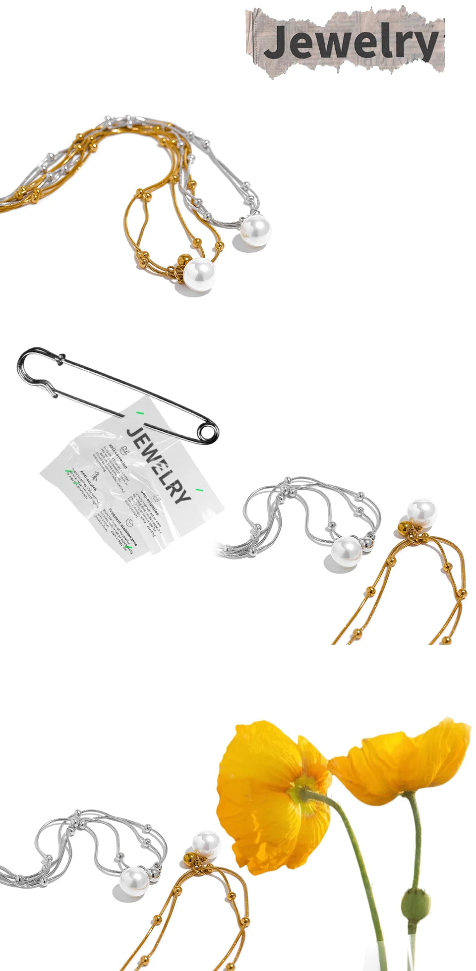 - 1 x Yhpup Perlen-Imitat Halskette (je nach Auswahl Gold- oder Silber-Finish)