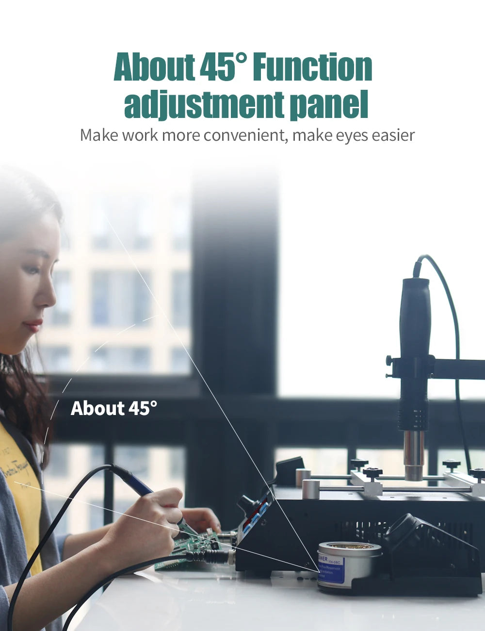 - Optimal für BGA-Rework, SMD-Entfernung, Reflow-Repair und allgemeine Lötarbeiten an PCBs.