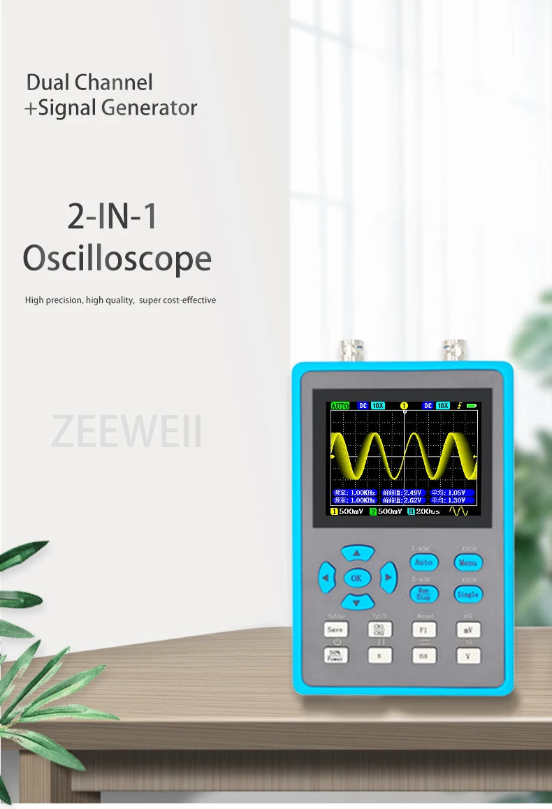 Das ZEEWEII DSO2512G kombiniert portables Design mit hoher Messgenauigkeit und einem integrierten Signalgenerator, sodass Sie zuverlässige Analysen direkt vor Ort durchführen können.