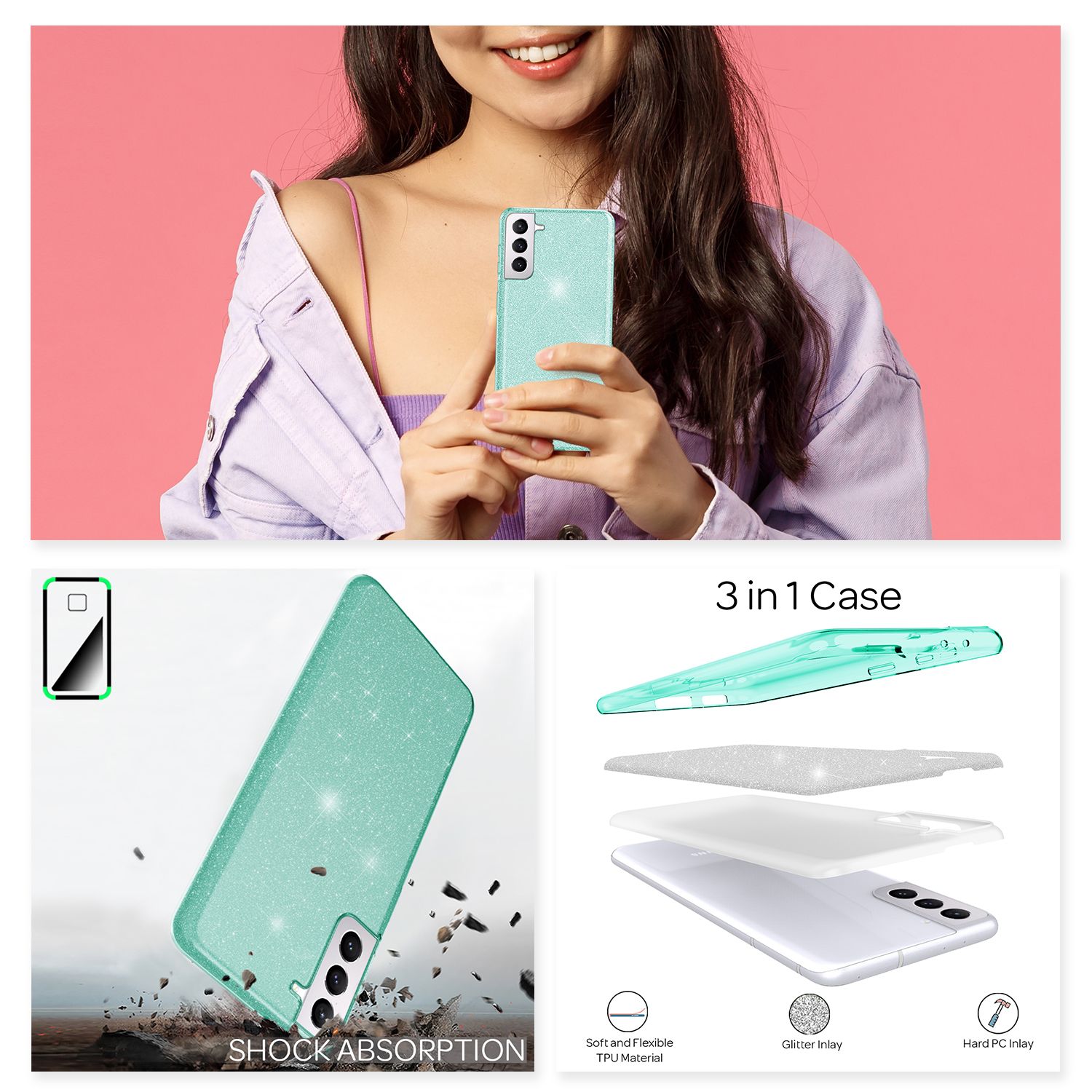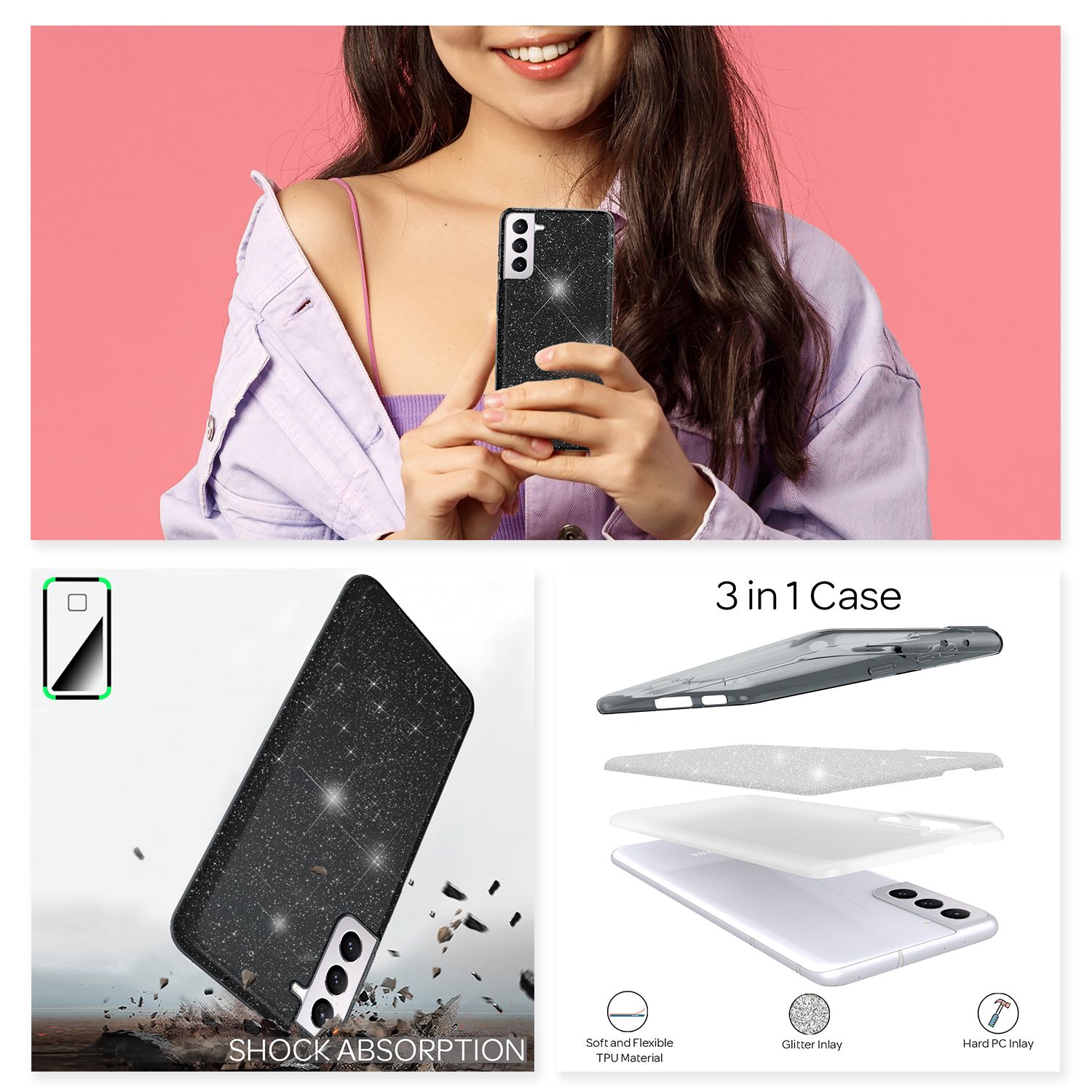 NALIA Glitzer Handy Hülle für Samsung Galaxy S21 Plus, Strass Diamant Back Cover