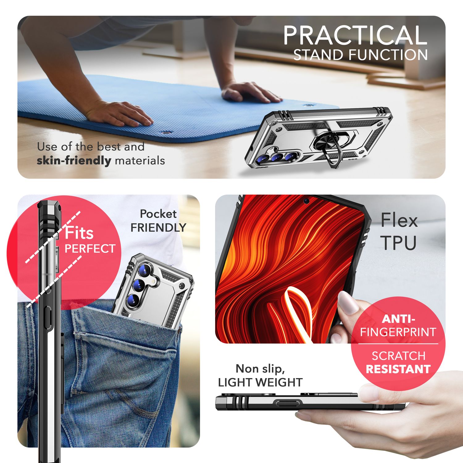 NALIA Military-Style Ringhülle für Samsung Galaxy S24 Hülle, Extrem Robust & Schock-Resistent, Outdoor Schutzhülle