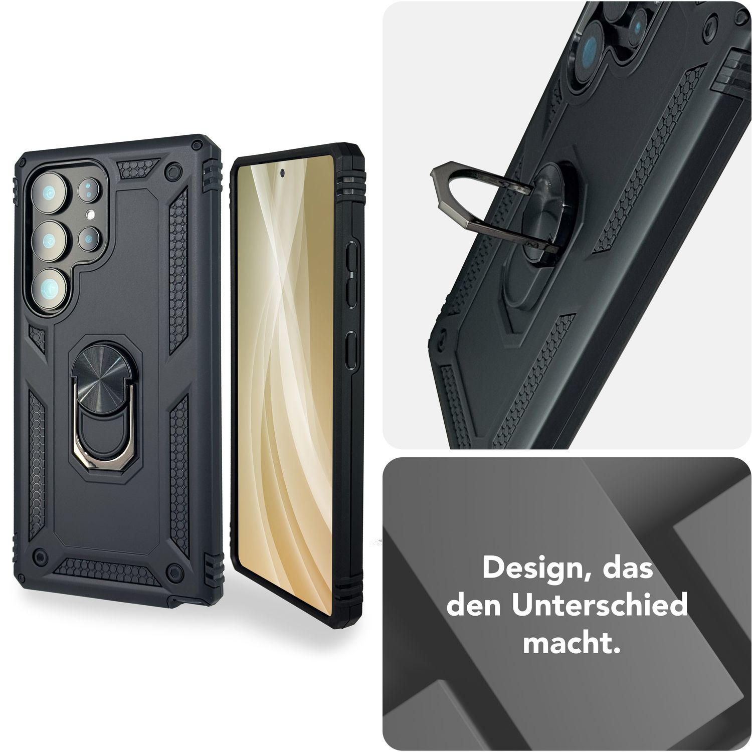 NALIA RingDefend für Samsung Galaxy S25 Ultra Hülle, Schockfeste Military Style Ringhülle, Kickstand Panzerhülle, 360° Rotierbarer Ring für Ständer und Finger-Halter