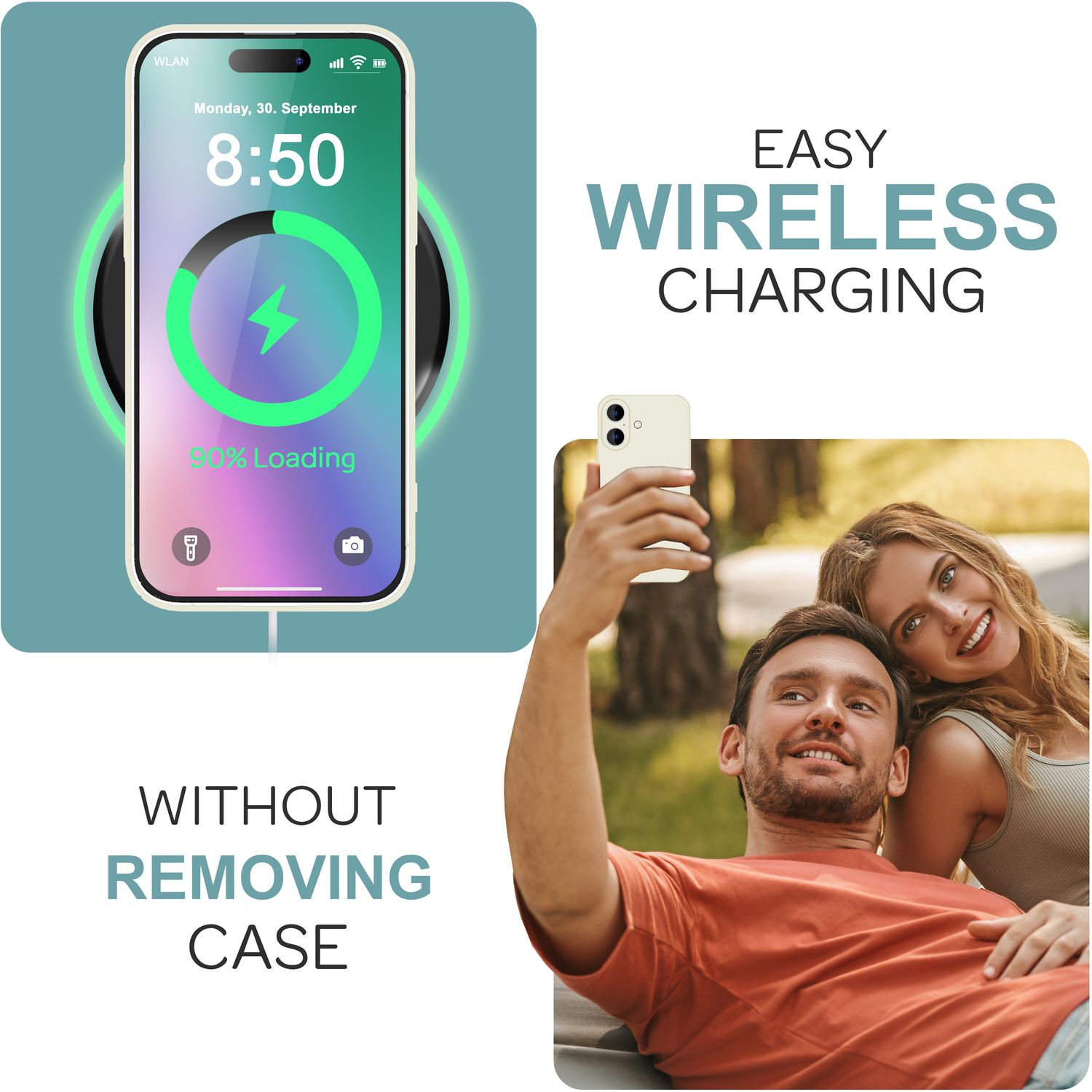 Wireless Charging? Kein Problem! PureFit ist zu 100 % kompatibel mit kabellosem Laden – einfach auflegen und laden, ohne die Hülle zu entfernen.