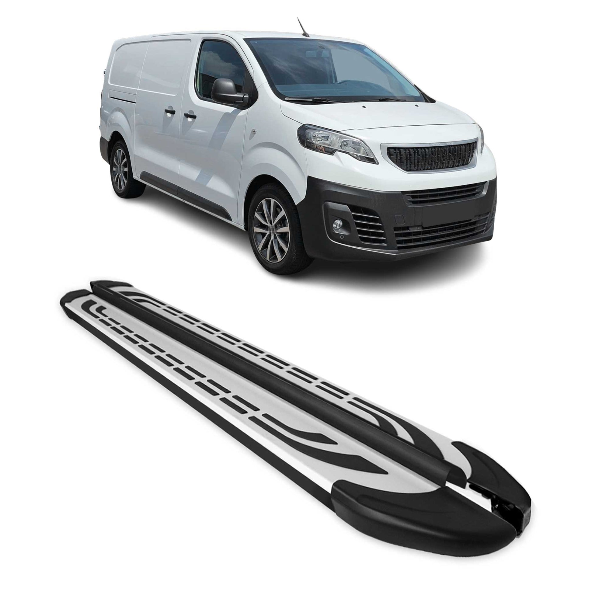 Trittbretter Schweller für Peugeot Traveller 2017-2023 L2 L3 Alu Schwarz-Silber