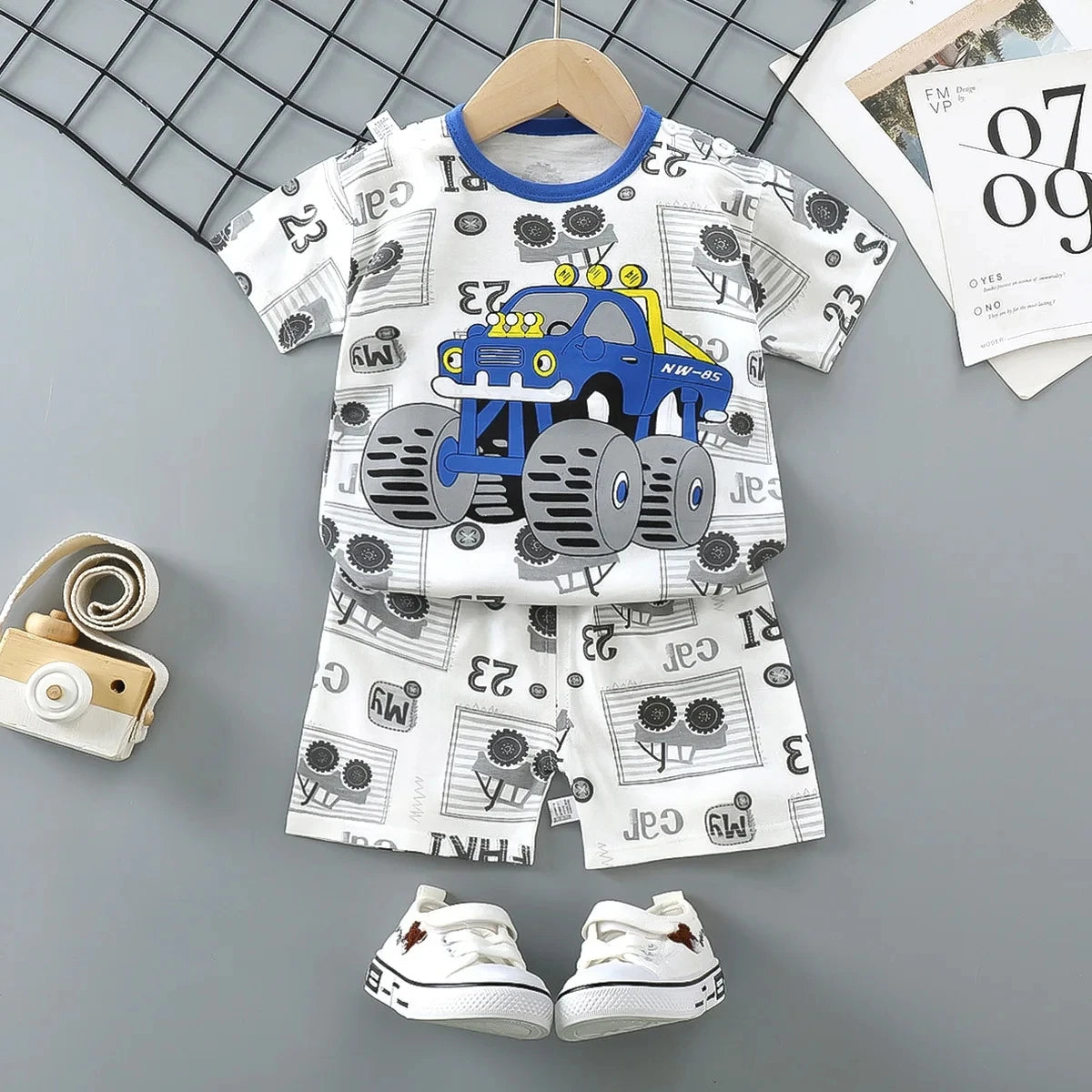Set de vară cu mânecă scurtă MINISOCN pentru bebeluși - bumbac 0-3M băieți