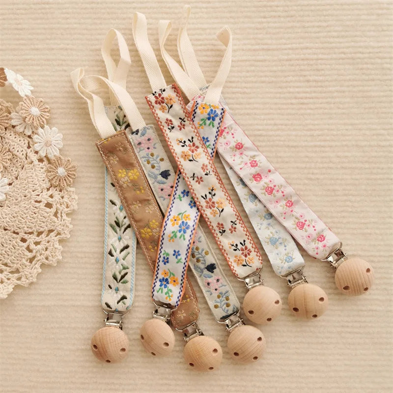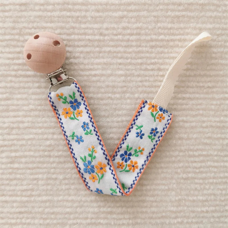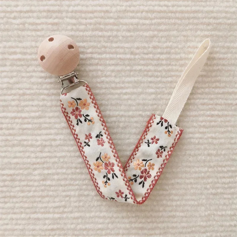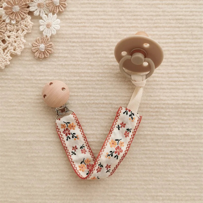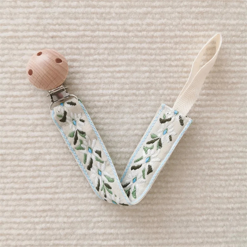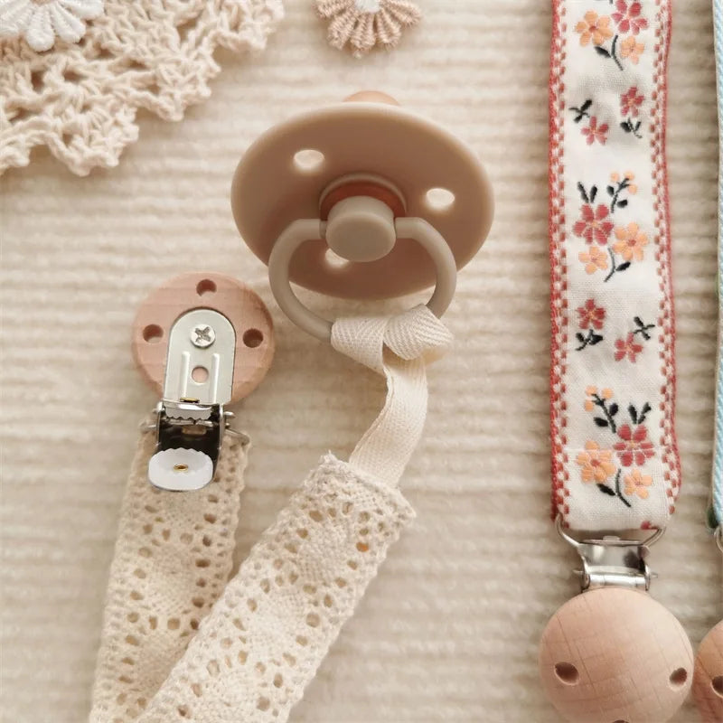 - 1 x Suport pentru suzetă ANZLI Retro de înaltă calitate – panglică de bumbac brodată cu clemă