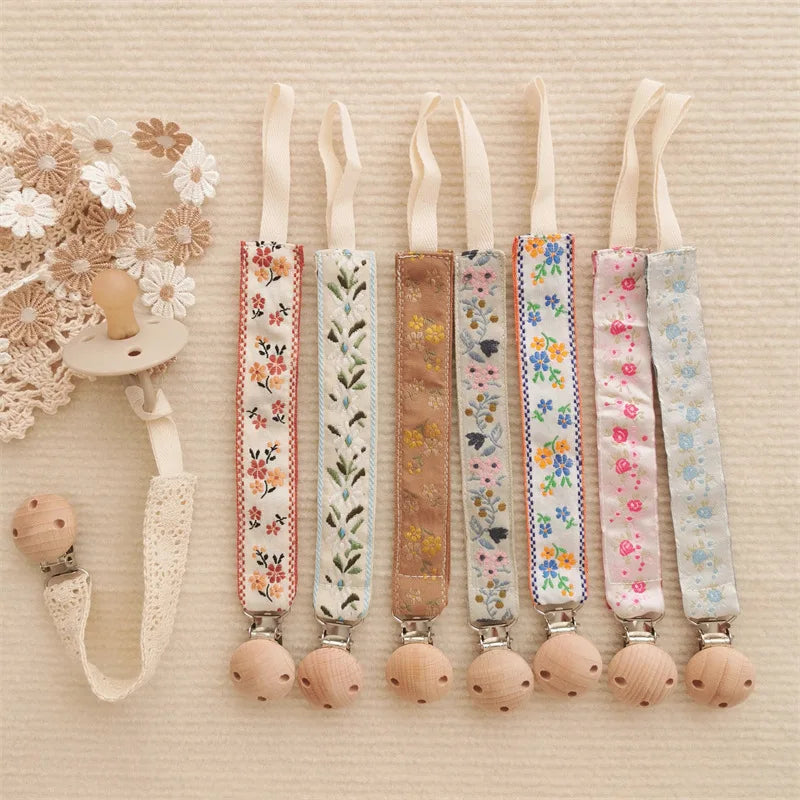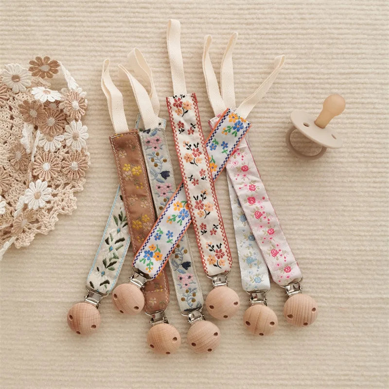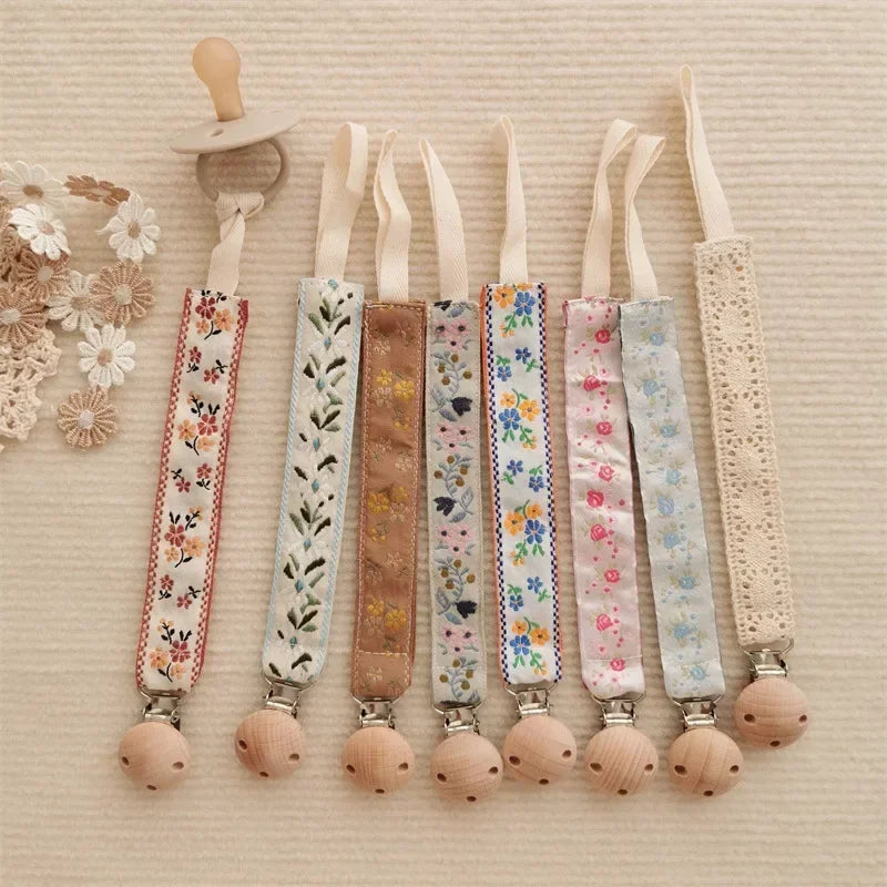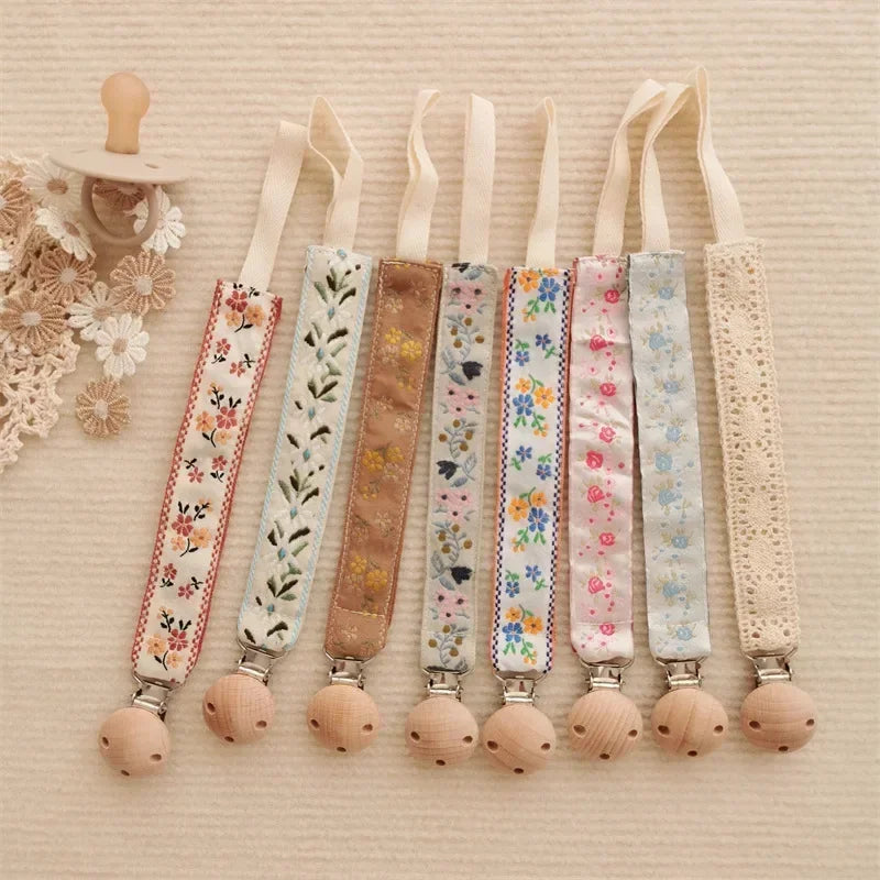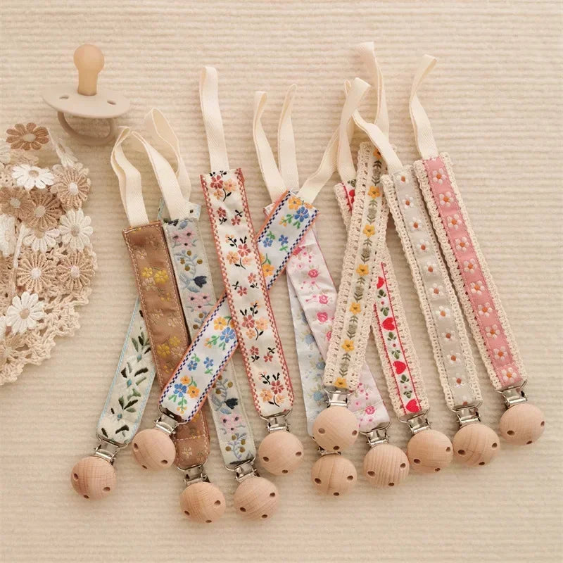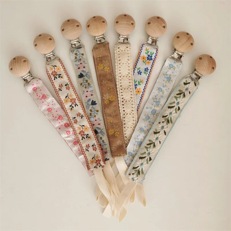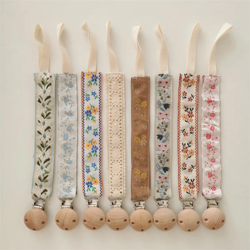- 1 x Suport pentru suzetă ANZLI Retro de înaltă calitate – panglică de bumbac brodată cu clemă