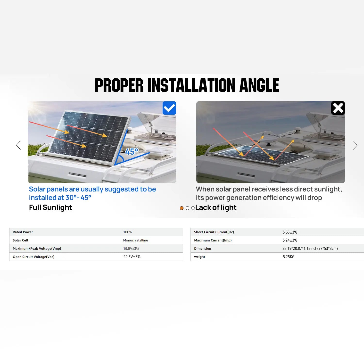 - Tensiune nominală de 18V optimizată pentru încărcarea eficientă a sistemelor de baterii de 12V și 24V, reduce timpii de încărcare și crește eficiența sistemului.