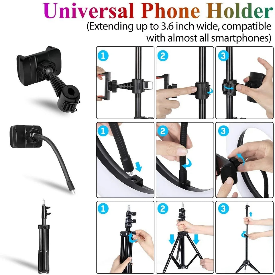 - Suport de telefon compatibil cu suport reglabil, potrivit pentru majoritatea smartphone-urilor, pentru fotografii stabile.