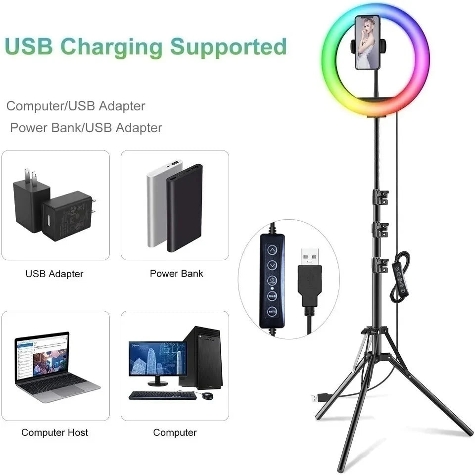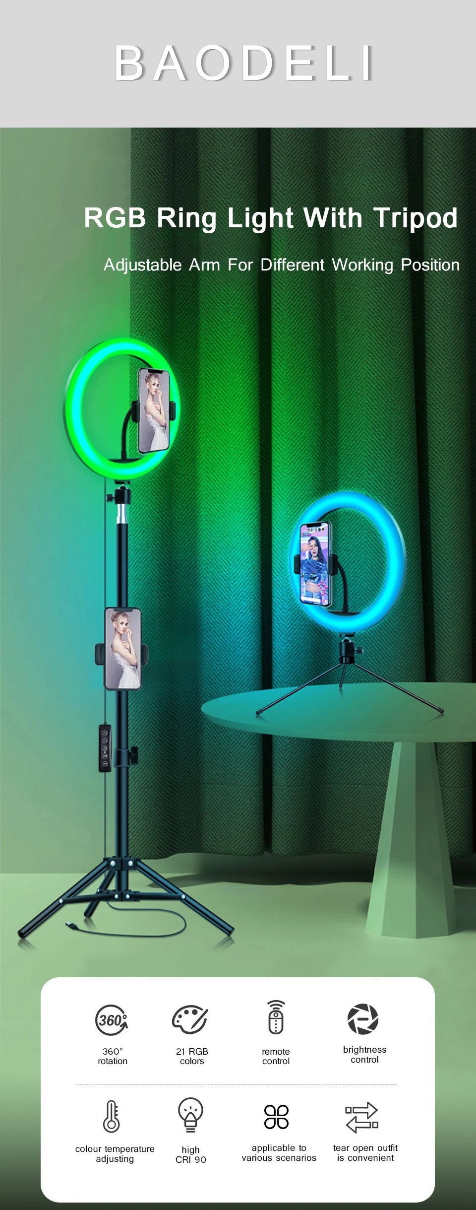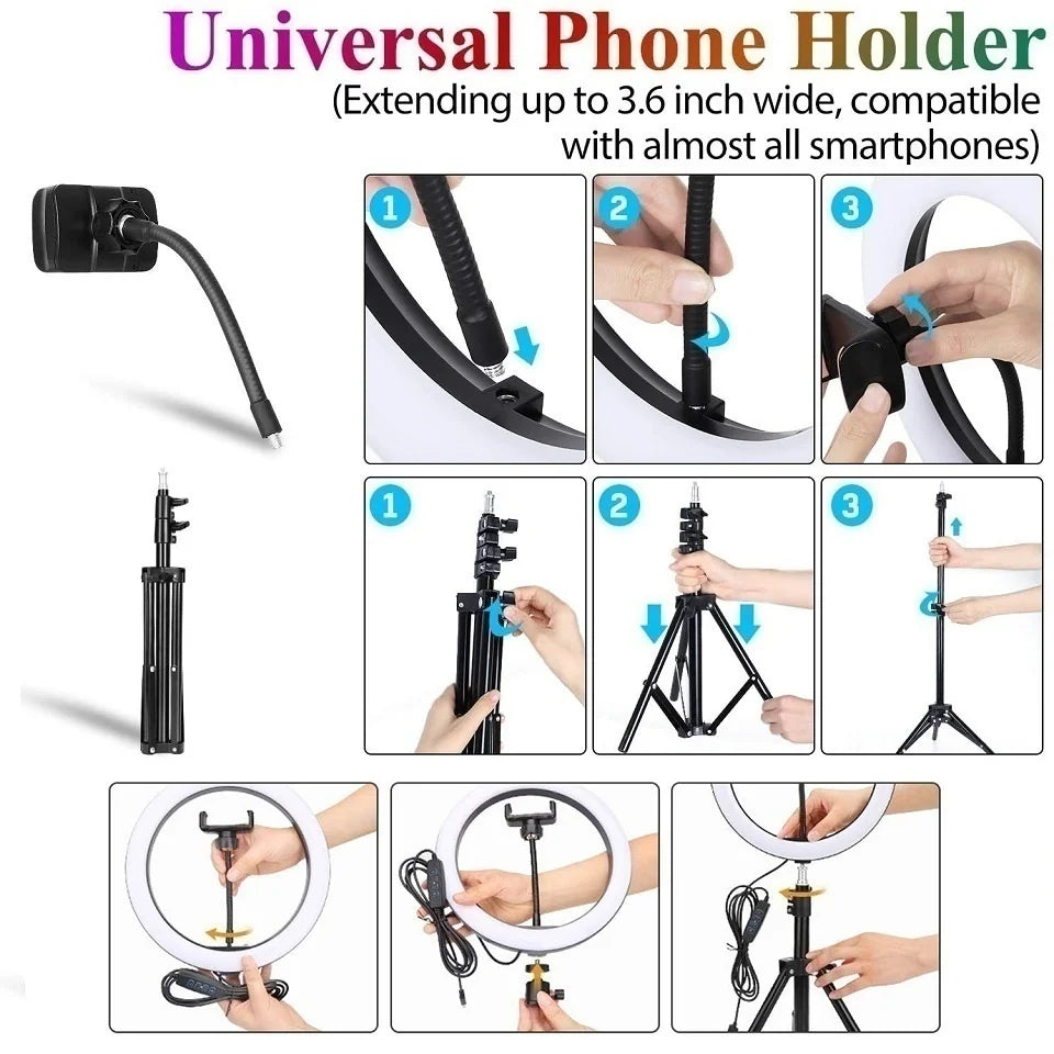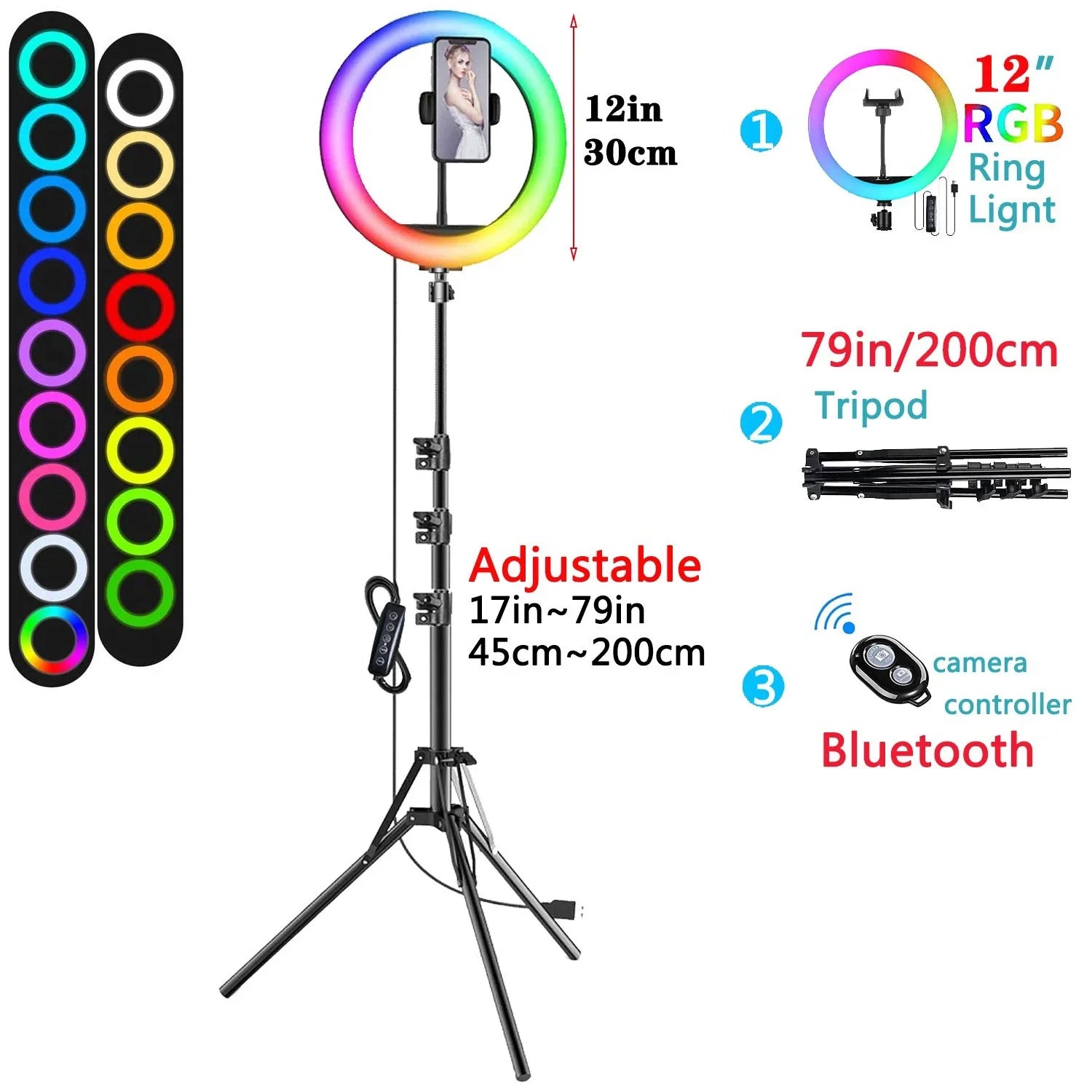 Inel luminos 2025: Trepied RGB pentru selfie de 12 inch și 30 cm - Suport telefon, fotografie, LED, colecție de machiaj