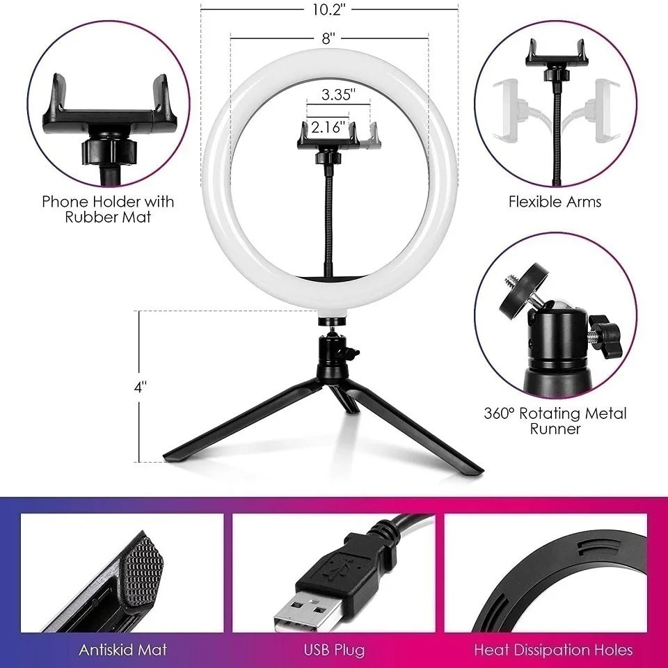 - Designul portabil permite configurări rapide în timpul ședințelor foto sau al tutorialelor de înfrumusețare.