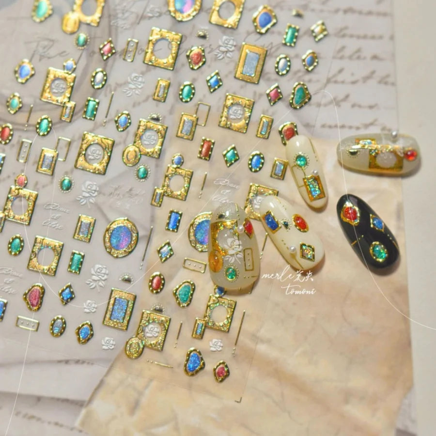 Autocolante pentru unghii RhstoeChoice 5D cu margine aurie - Glamour instantaneu pentru manichiura ta