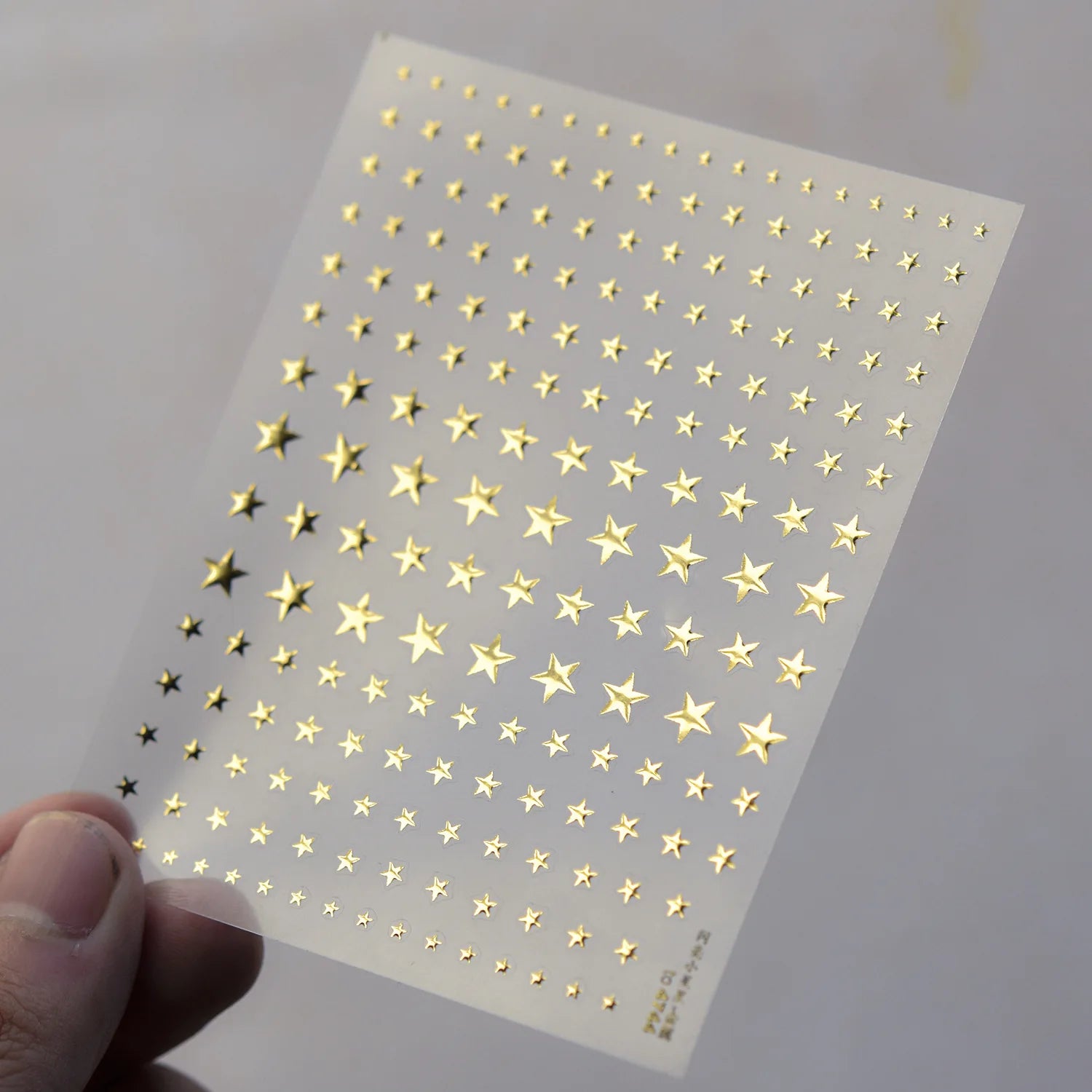 - 1x RhstoeChoice autocolant unghii 5D margine aurie - inimă lună stea (1 buc)