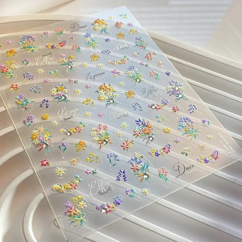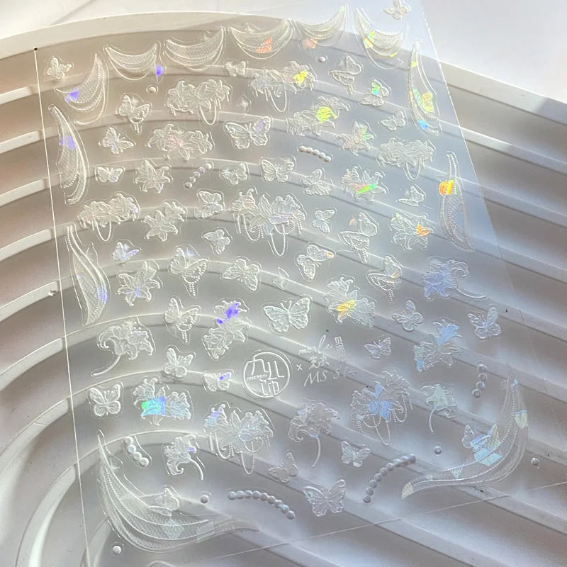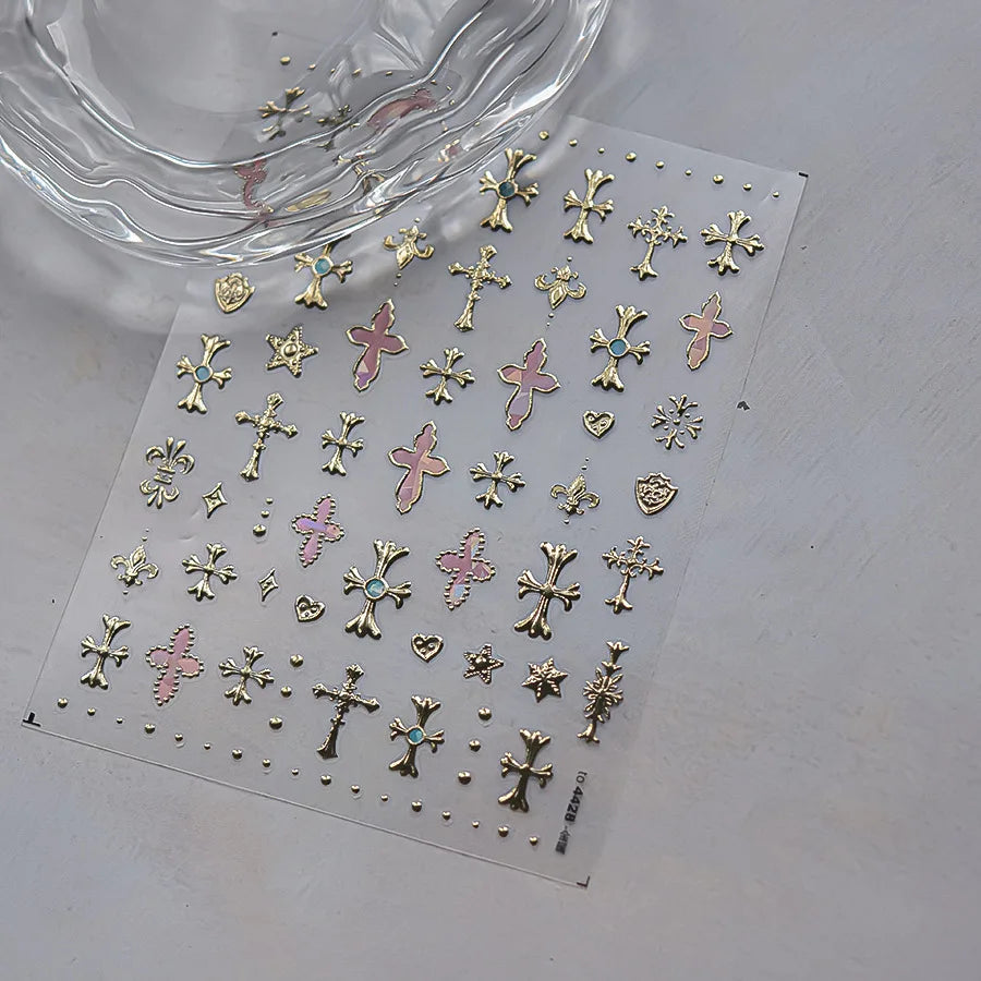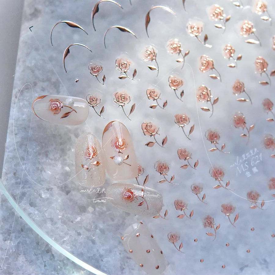 Transformă-ți manichiura instantaneu: Autocolante 5D lucioase pentru unghii, cu contur auriu și motive detaliate, pentru o artă a unghiilor cu aspect profesional acasă.