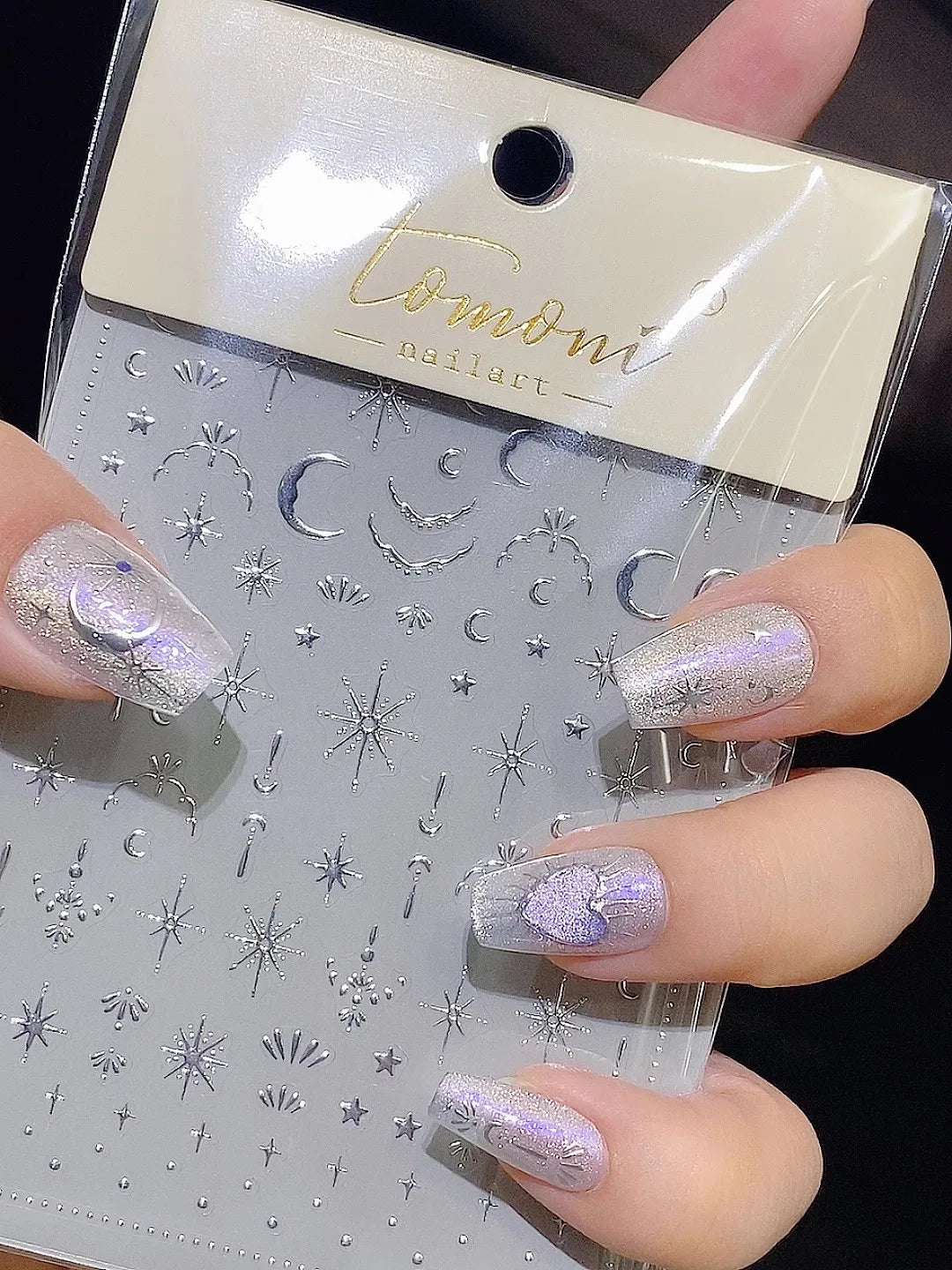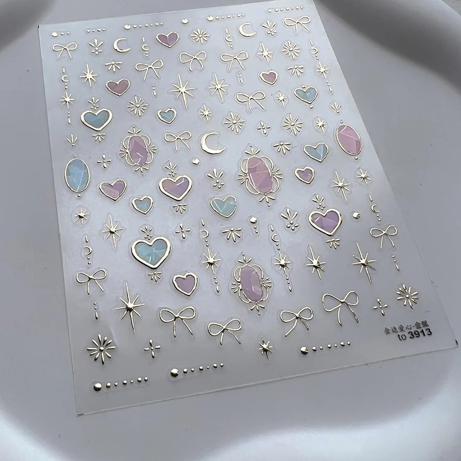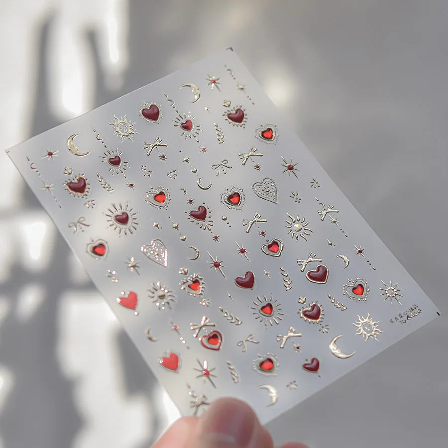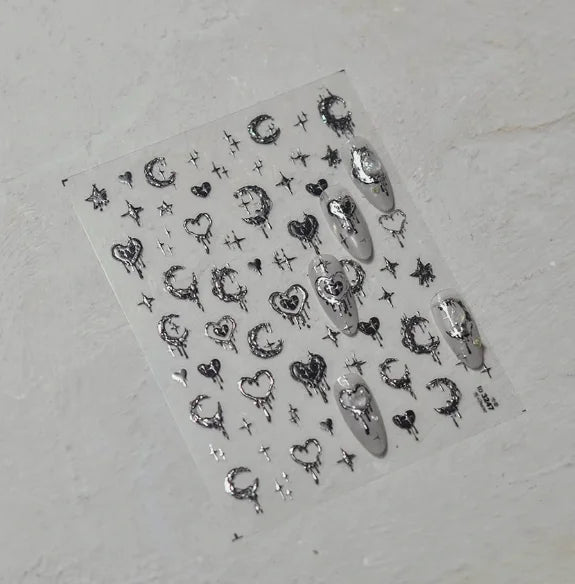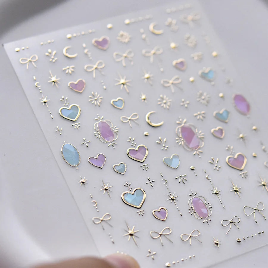 - 1 x TSZS TO3913 Decorațiune unghii 5D strălucitoare - Inimă și Lună (1 bucată cu mai multe elemente autocolante)