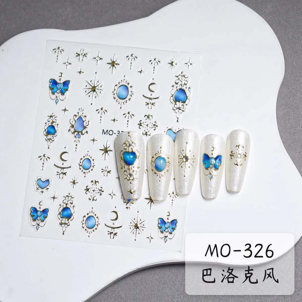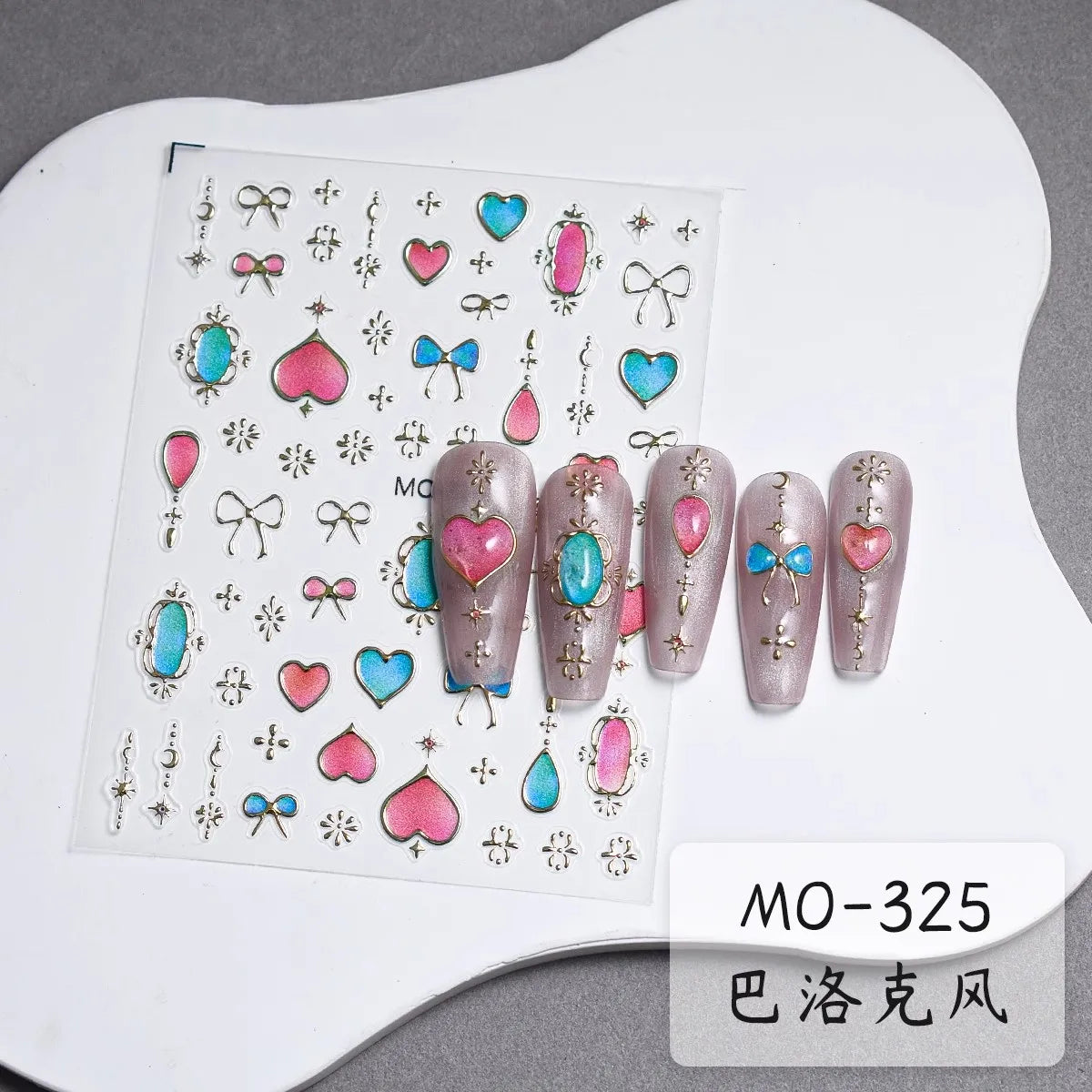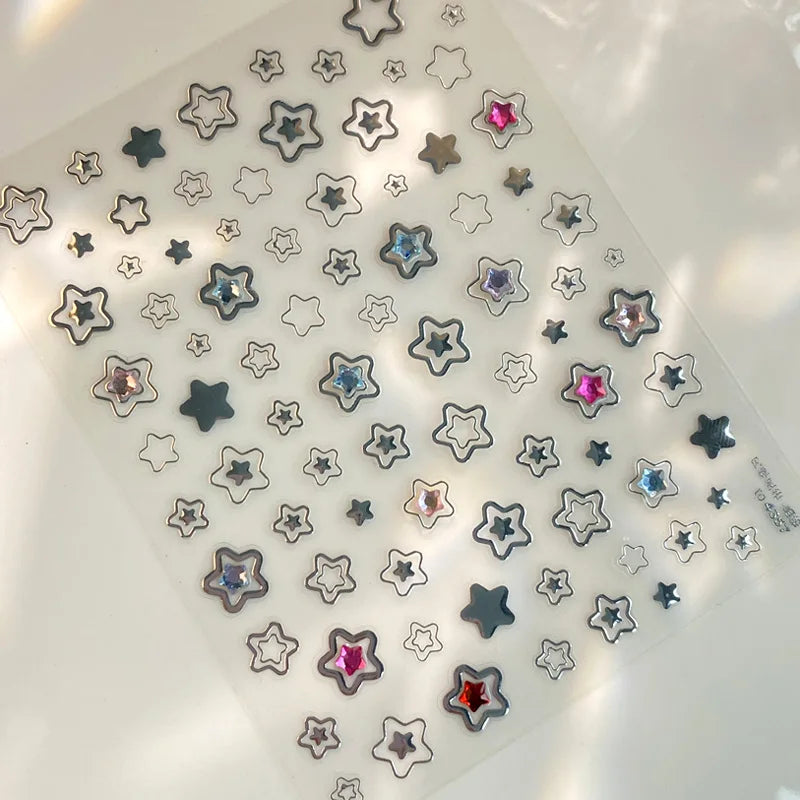 - 1 x TSZS TO3913 Decorațiune unghii 5D strălucitoare - Inimă și Lună (1 bucată cu mai multe elemente autocolante)